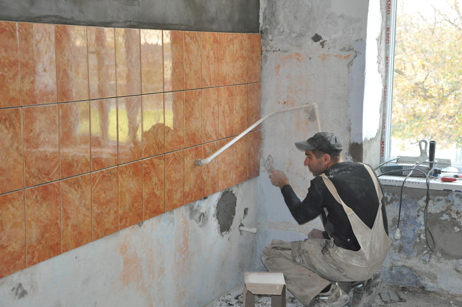Сегодня глава госадминистрации, заместители главы Сергей Костюк и Юрий Молдовский ознакомились с ходом ремонтных работ. В здании отремонтировали кровлю. В комнатах поменяли окна, установили двери, провели электроработы. На данный момент в служебных помещениях укладывают керамическую плитку, в комнатах штукатурят потолки и стены.