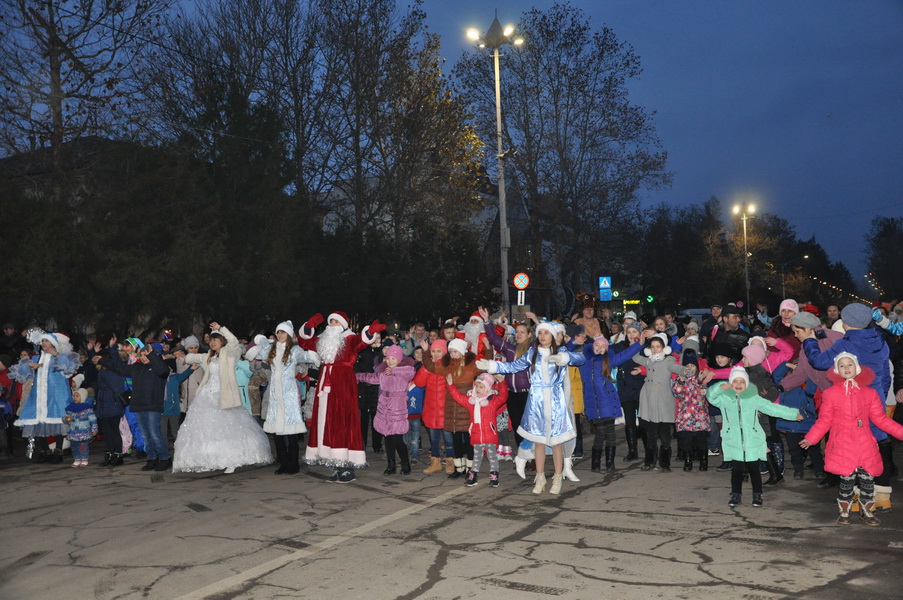 Затем на площади Победы началась праздничная программа «Новый год к нам мчится!». Коллективы учреждений культуры и образования провели развлекательные и игровые программы для детей, показали театральные постановки. Все желающие смогли сфотографироваться со сказочными персонажами. Под всеобщий восторженный возглас главная городская ёлка засверкала разноцветными огоньками. Сказочные персонажи водили хороводы с юными рыбничанами у сверкающей хвойной красавицы.