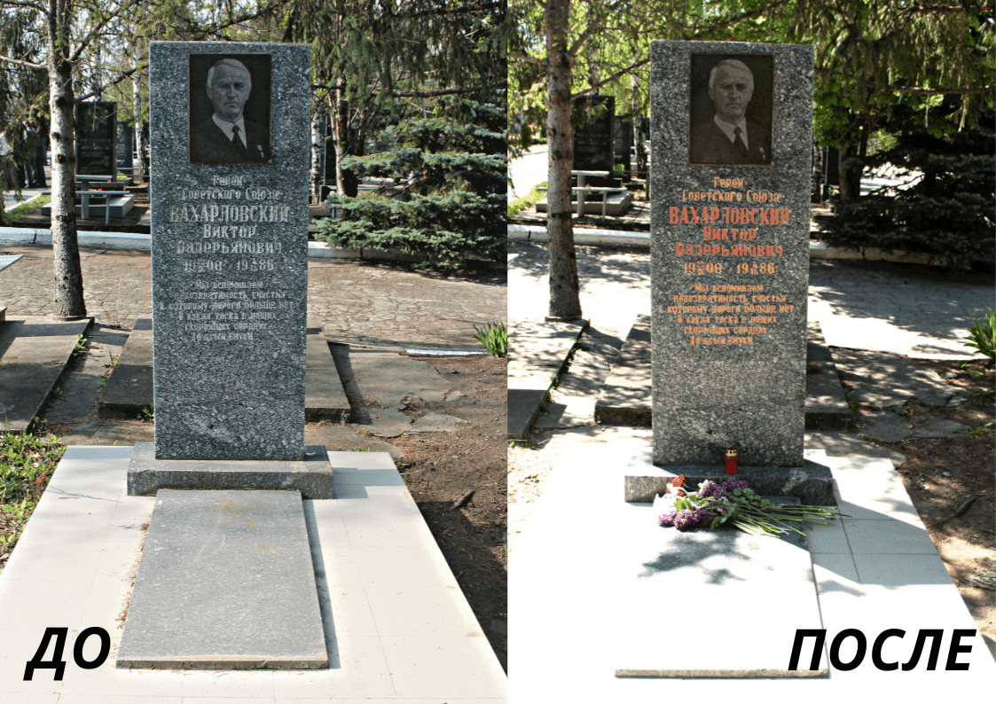В преддверии Дня Победы в Рыбнице облагораживают могилы участников Великой Отечественной войны. Сегодня на городском кладбище обновили памятник Герою Советского Союза Виктору Валерьяновичу Вахарловскому.