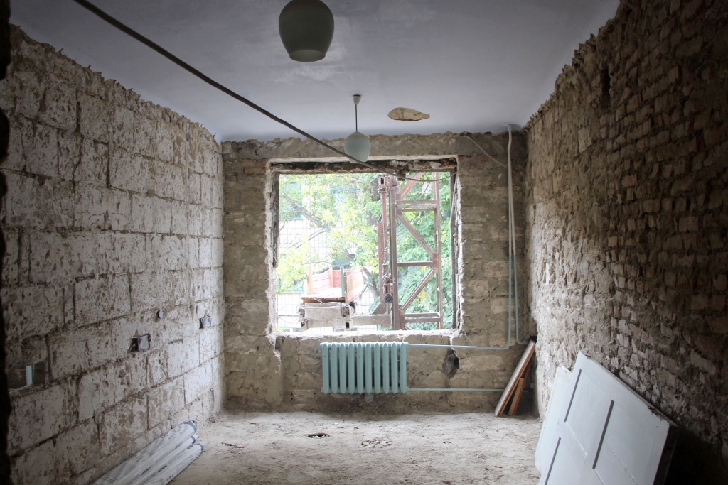 Здесь в отделении хирургии проводят работы в рамках программы фонда капитальных вложений. На 3 этаже здания завершены работы по отбивке штукатурки с поверхности стен, разборке деревянных дверных проемов и покрытий полов. Начаты электромонтажные работы.