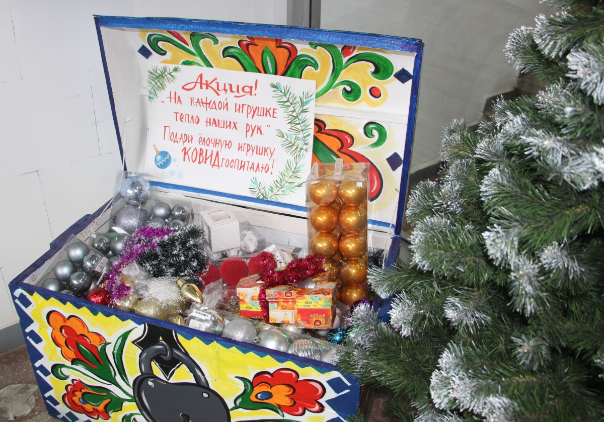 Воспитанники подготовительной группы принесли ёлочные игрушки для создания праздничной атмосферы в Covid-госпитале и подарили частичку своего тепла пациентам медучреждения.