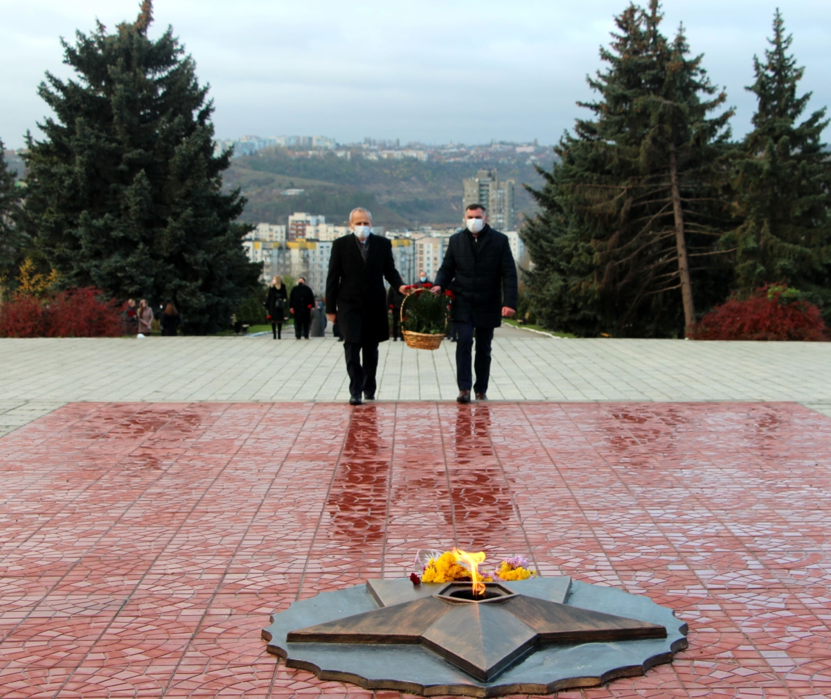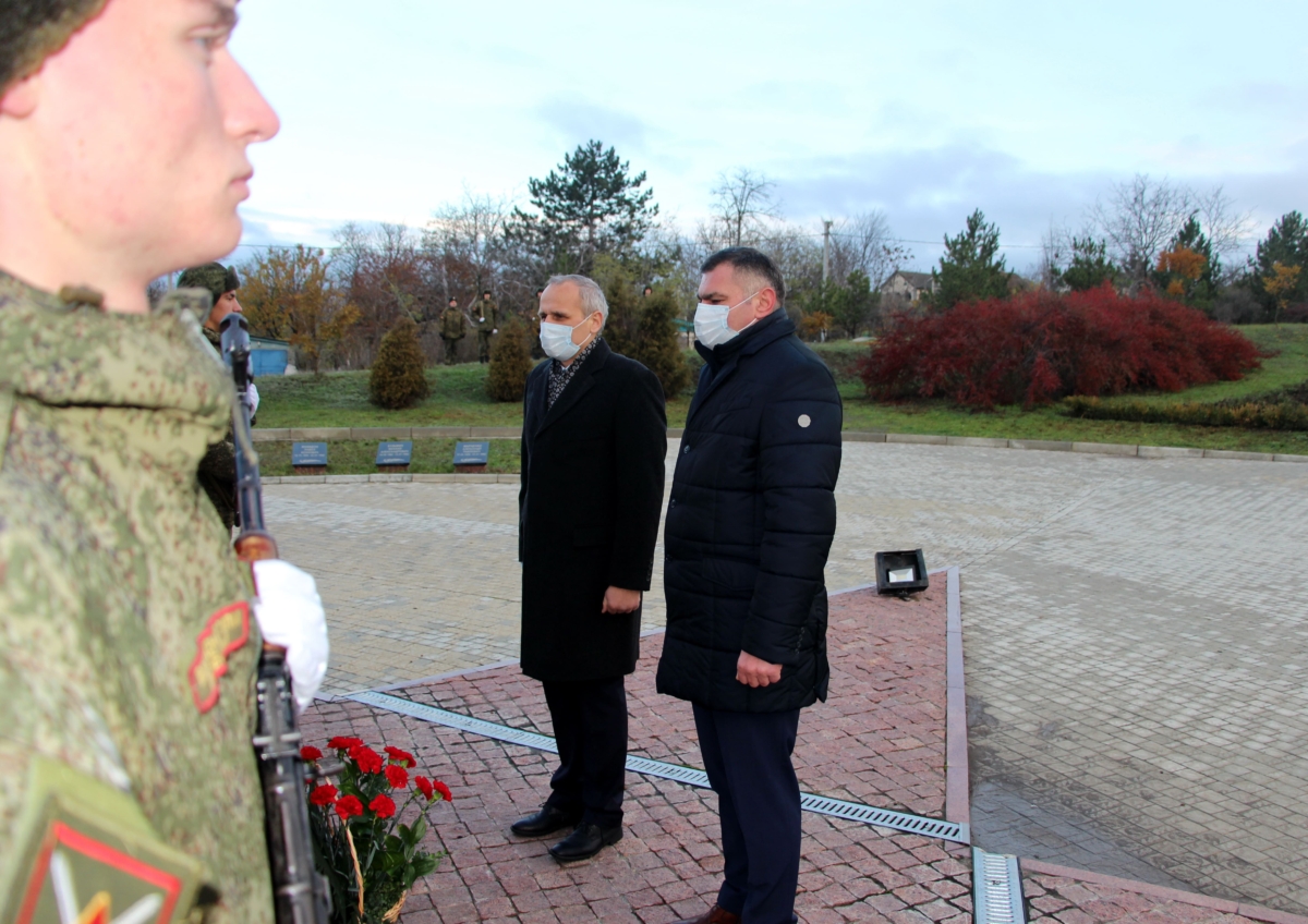 С утра руководство государственной администрации, Совета народных депутатов и депутаты Верховного Совета возложили цветы к памятному знаку генерал-майору К.Н. Цветкову – командиру 41-й стрелковой гвардейской дивизии, которая принимала участие в освобождении Рыбницы от немецко-фашистских захватчиков весной 1944 года. Затем посетили Мемориальный комплекс, чтобы отдать дань памяти павшим в годы Великой Отечественной войны, необъявленной войне 1992 года и погибшим при ликвидации последствий аварии на Чернобыльской АЭС. Память воинов почтили минутой молчания.