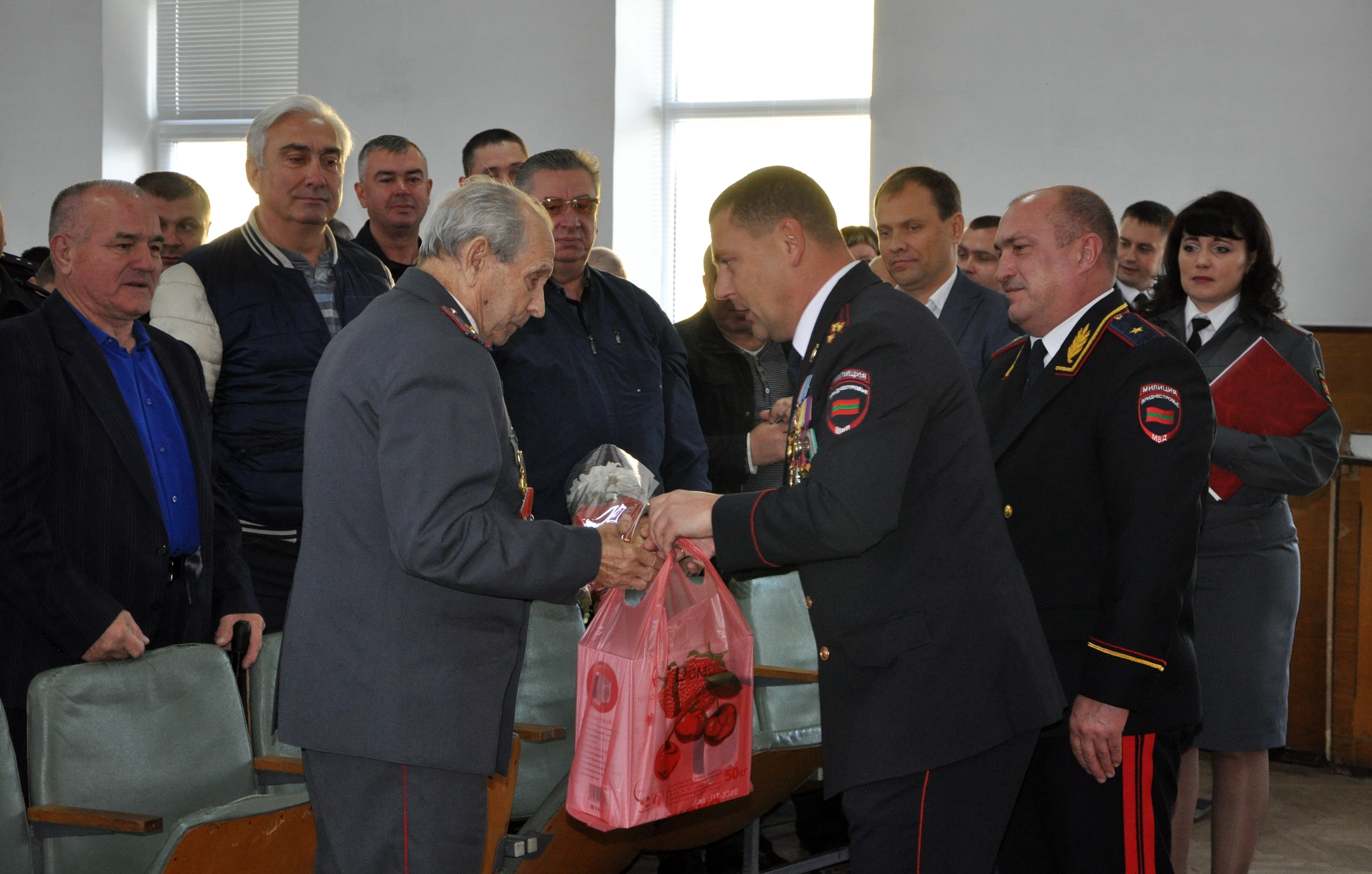 На мероприятии присутствовал один из самых старейших сотрудников рыбницкой милиции, ветеран Великой Отечественной войны Филипп Сафронович Оловягин, который 11 ноября отметит свой 95-й день рождения. Юбиляру вручили памятный подарок.