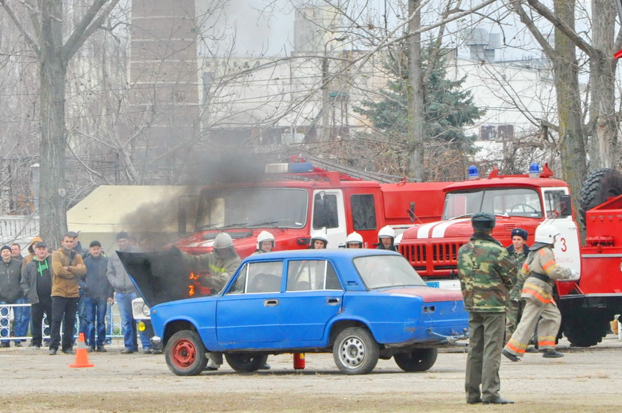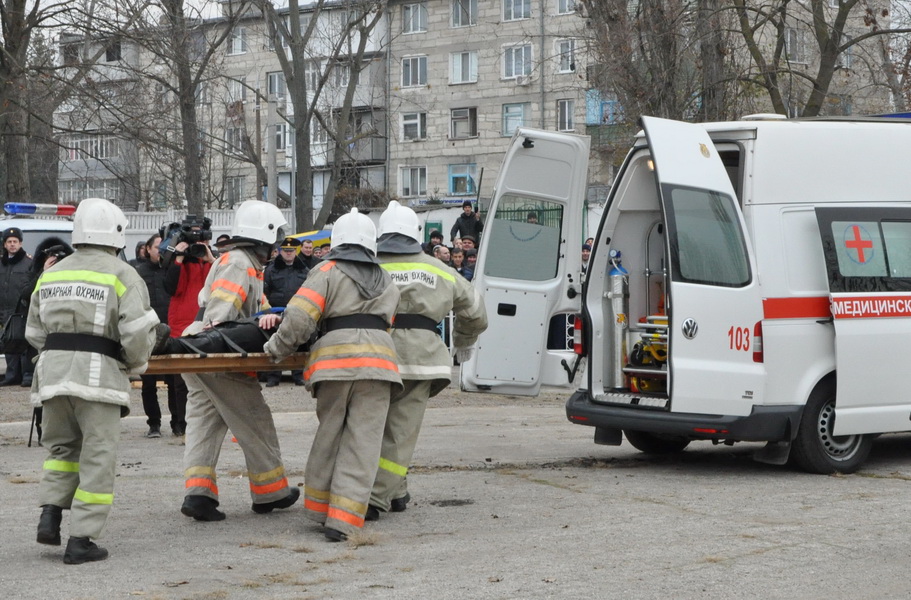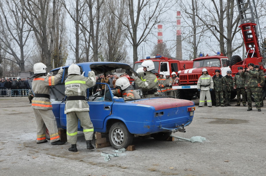 Для участников тренировки были организованы показательные выступления по ликвидации последствий дорожно-транспортного происшествия. По легенде, в катастрофе пострадал человек. Спасатели извлекали его из поврежденного автомобиля.