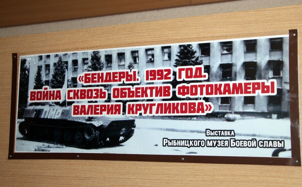 С утра у музея боевой славы экспонировалась тематическая выставка “Бендеры. 1992 год. Война сквозь объектив фотокамеры Валерия Кругликова”. Когда начался дождь, экспонаты переместили в помещение музея. Все желающие могут его посетить.