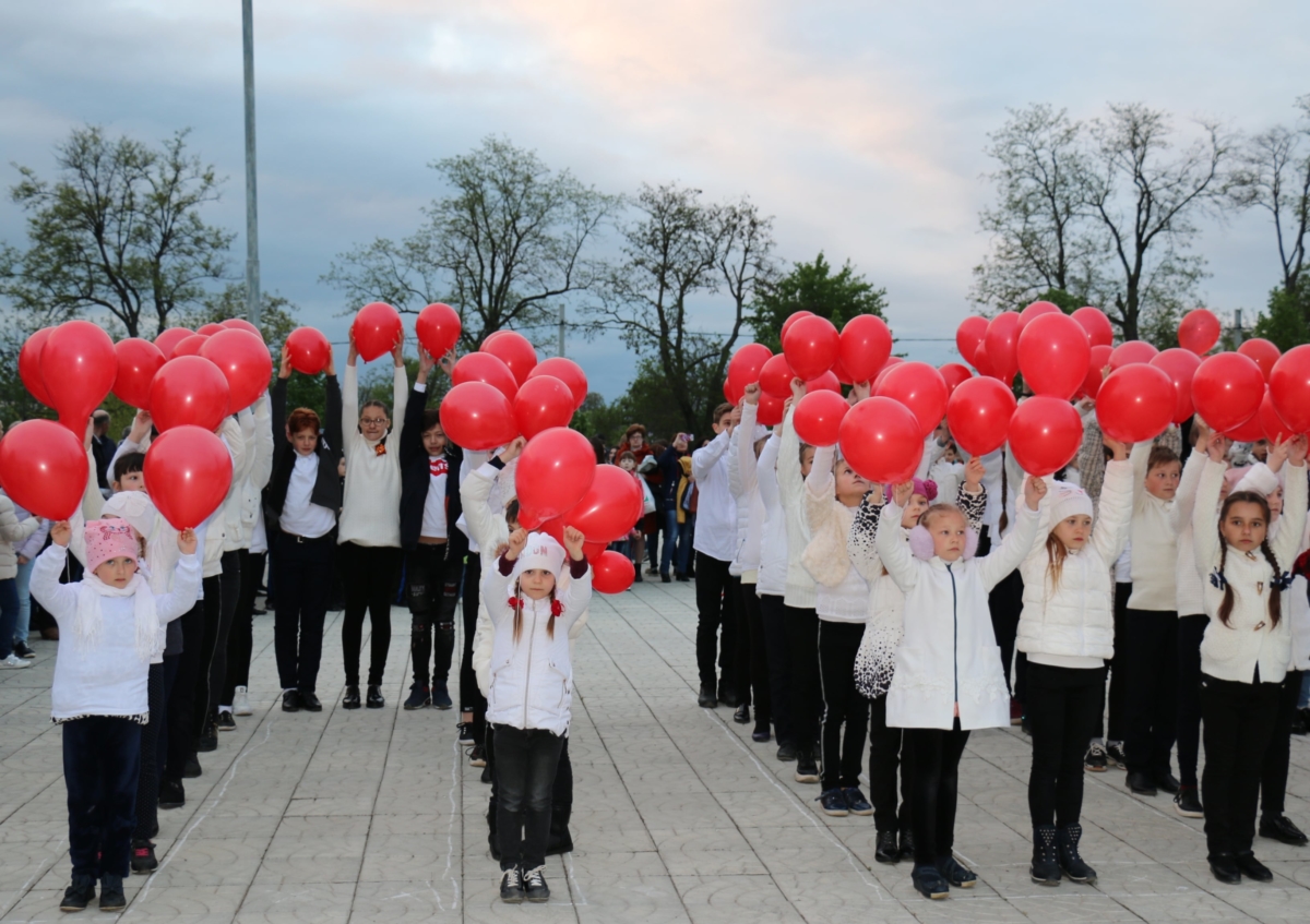 В знак безмерной благодарности школьники представили хореографическое выступление, в ходе которого выстроили слово “Победа”.