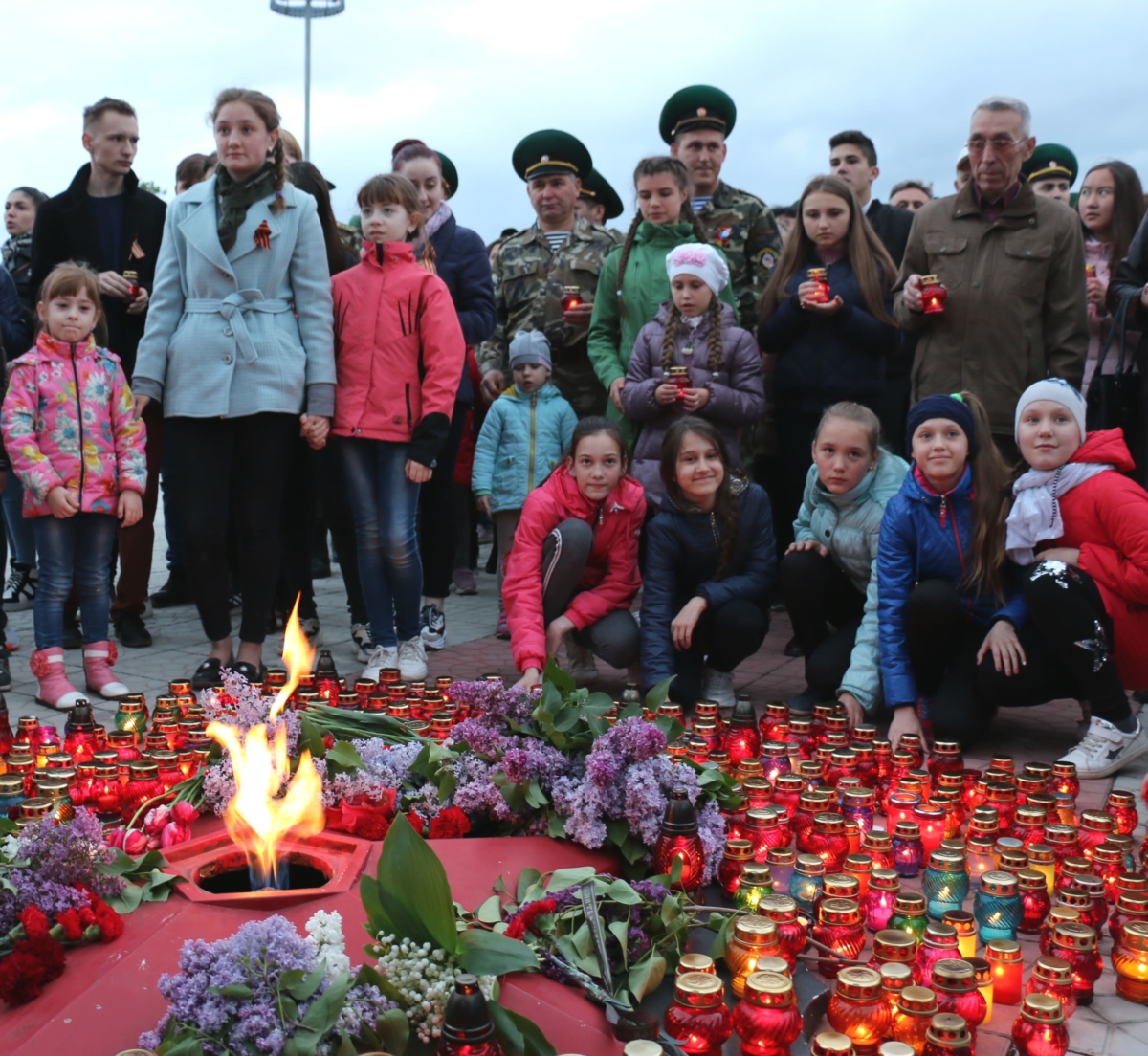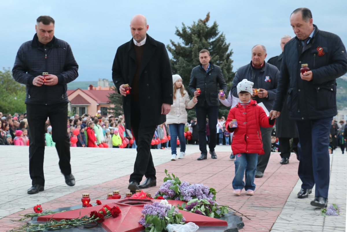 Минутой молчания почтили память героев войны 1941-1945 годов, погибших защищая нашу Родину. После чего горожане возложили цветы и горящие свечи к Вечному огню и плитам с именами погибших на войне рыбничан.