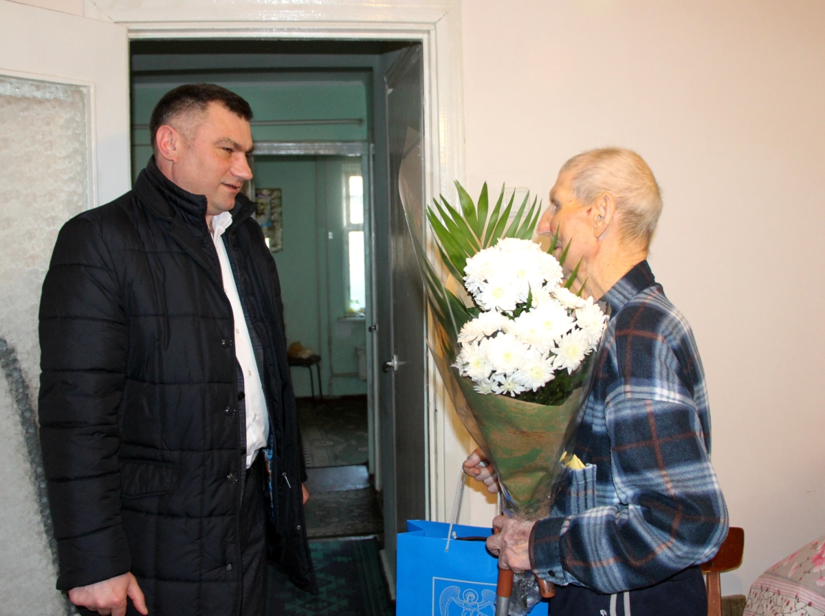 Сегодня глава госадминистрации Виктор Тягай и его заместитель Юрий Молдовский поздравили с юбилеем ветерана Великой Отечественной Войны Василия Пешкуна.