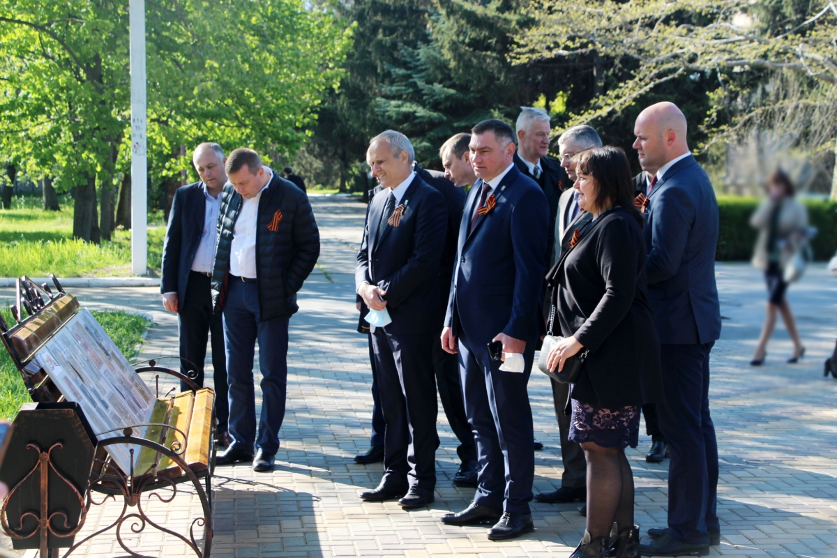 Позже мероприятия перенеслись к Мемориалу Славы. Здесь участники памятного церемониала возложили венки и цветы к Вечному огню. Память тех, кто не вернулся с полей сражения почтили минутой молчания.