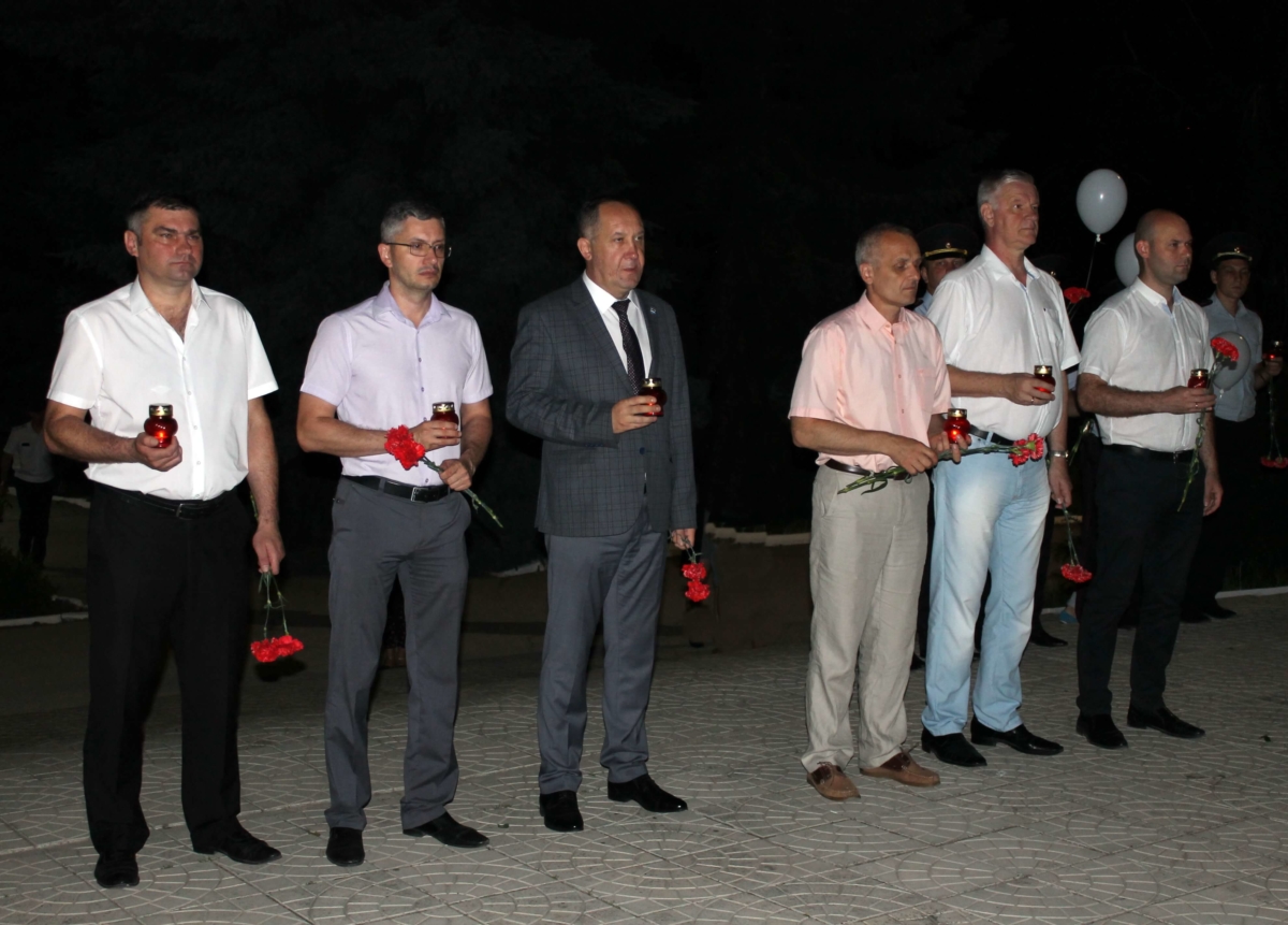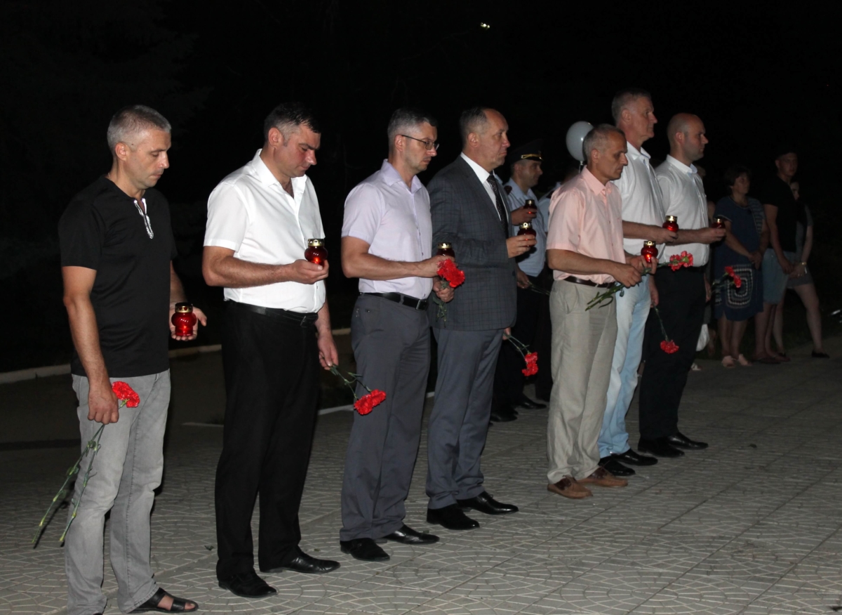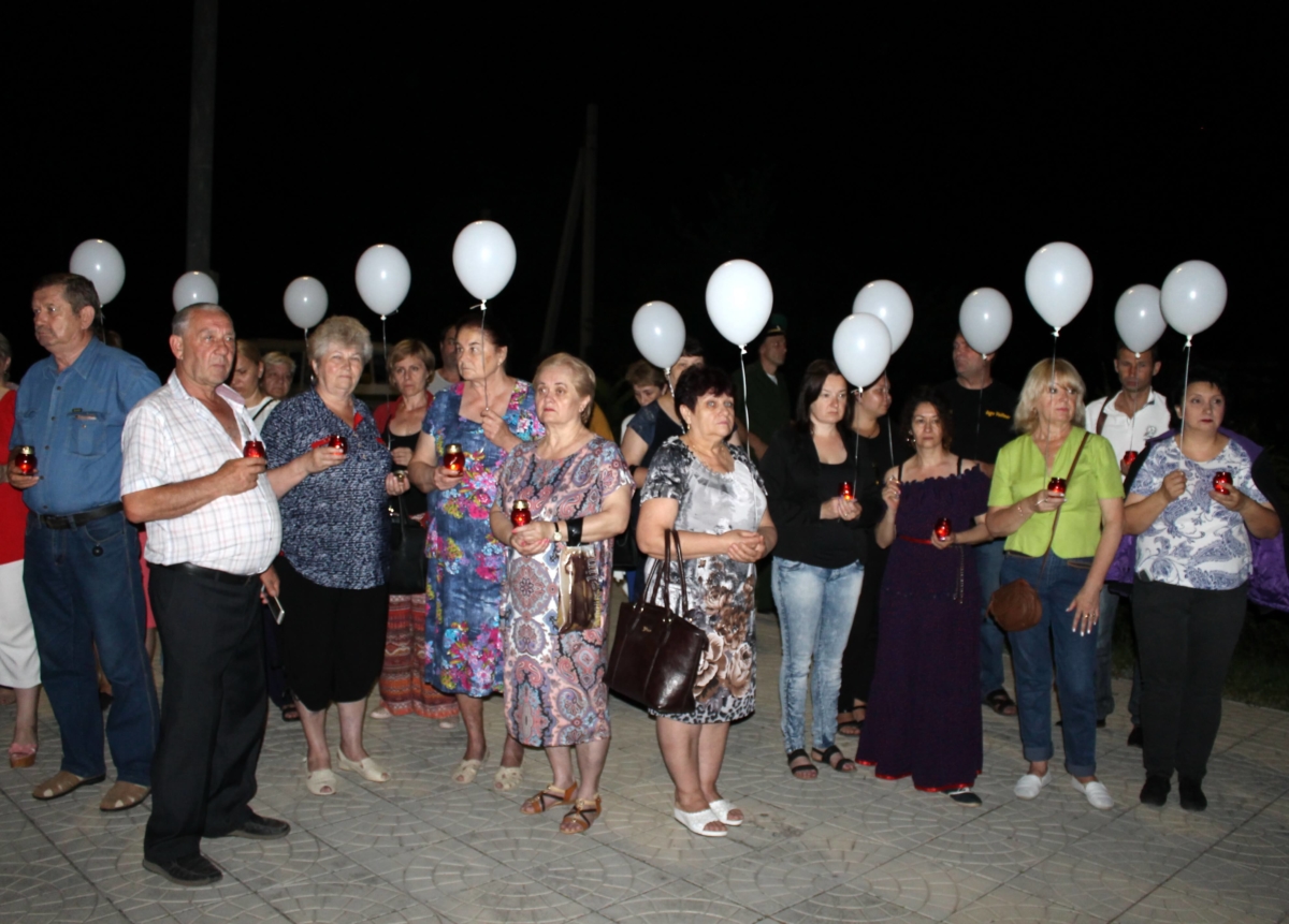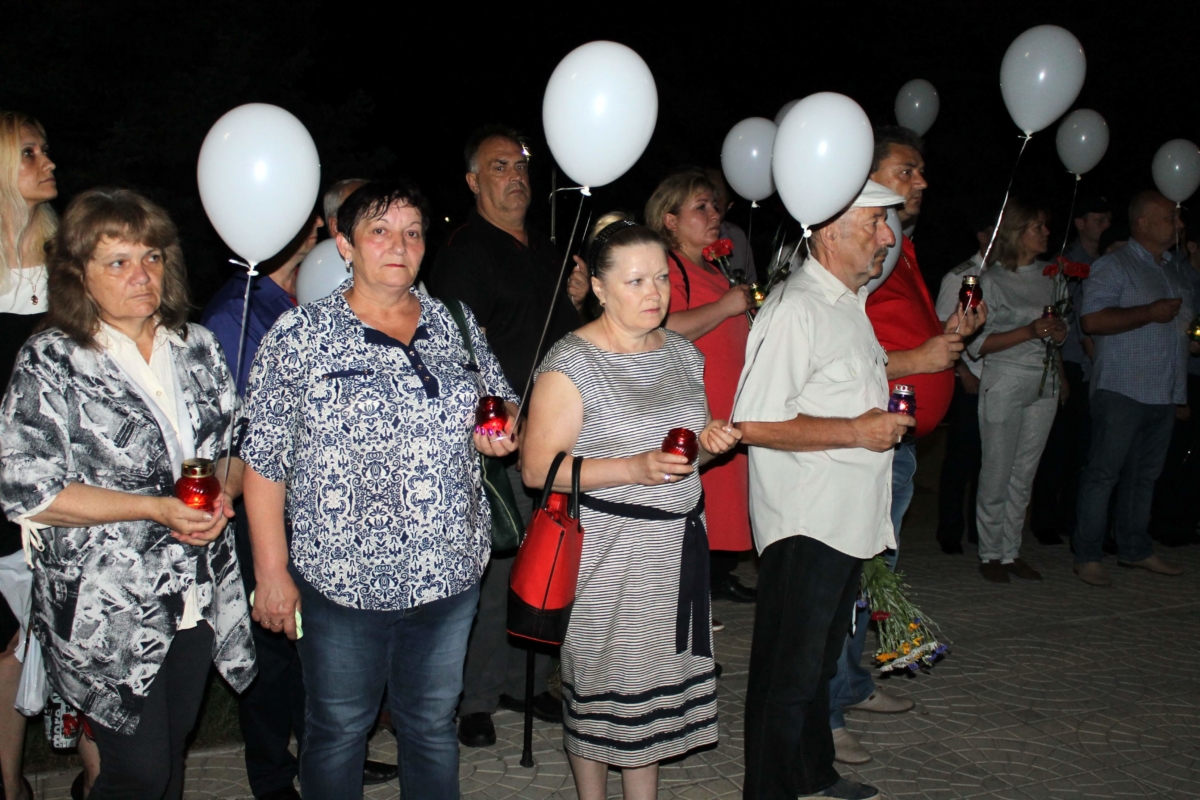 В числе участников – руководство города, представители общественных организаций, силовых структур и рыбницких предприятий. У присутствующих в руках памятные свечи, цветы и 78 белых шаров,что символично годовщине начала войны.