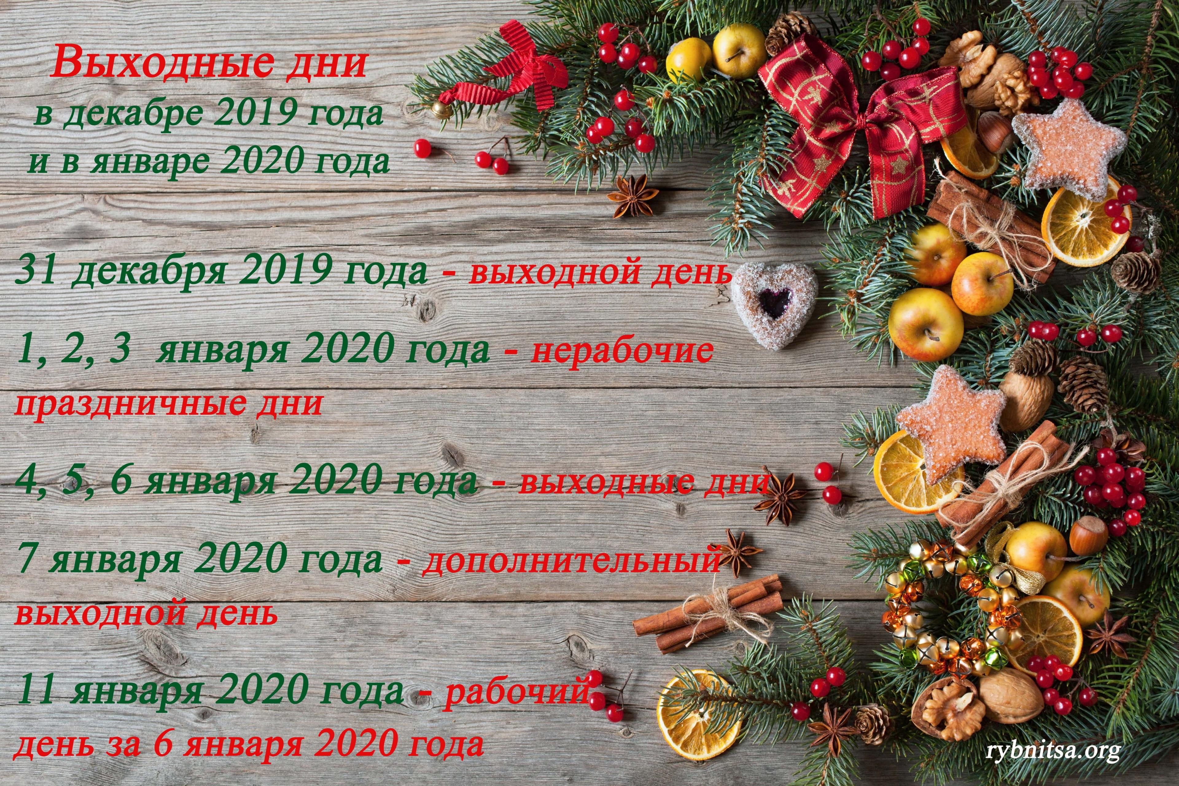 Выходные и праздничные дни в декабре и январе webrybnitsa Городские новости, Новости, Новости госадминистрации 20.12.201922.12.2019