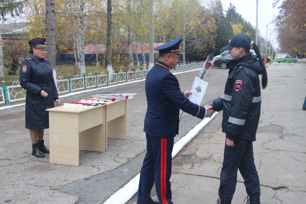 Гости мероприятия и личный состав РОВД возложили цветы к памятнику сотрудникам милиции, погибшим при исполнении служебного долга, и почтили их память минутой молчания.