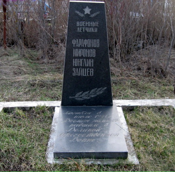 Есть в с. Воронково ещё одно дорогое для сердца каждого жителя села место – памятник лётчикам, навсегда ушедшим в небо в июле 1941, и легенда ещё об одном лётчике, разбившемся при посадке на аэродром. На мраморе высечены фамилии: О.М. Фарафонов, Х.И. Юнглин, В.М. Зайцев, К.И. Миронов, а в архивах есть ещё сведения о лётчиках В.Ф. Круш и Ф.И. Червоненко, тоже погибших здесь в эти первые недели войны.