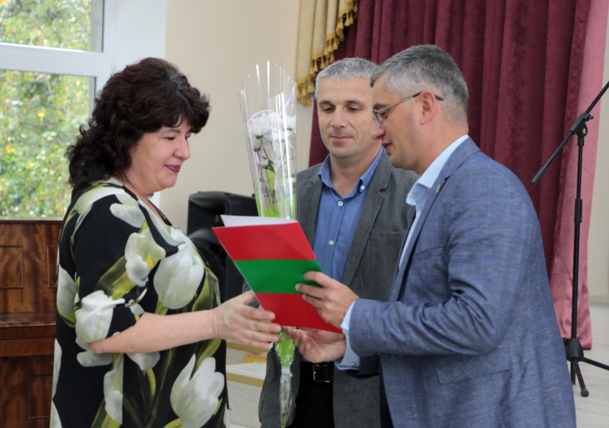 Сегодня в городской гимназии чествовали лучших работников системы народного образования Рыбницкого района и города Рыбницы. Поздравить учителей с профессиональным праздником пришли заместитель главы по социальным вопросам Юрий Молдовский и секретарь горрайсовета Дмитрий Багрин.