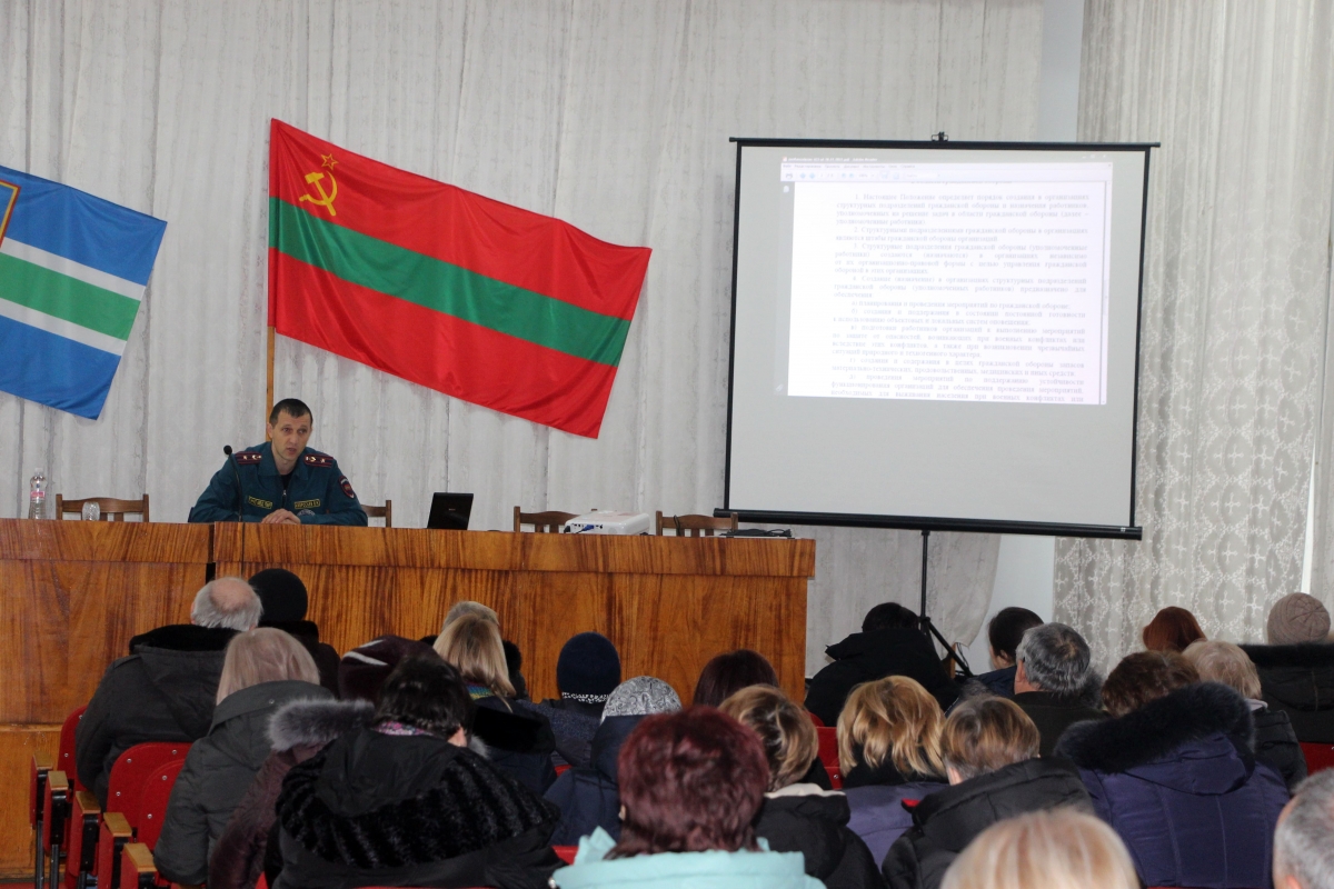 На занятиях присутствовали руководители городских учреждений, организаций и предприятий, а также главы сёл Рыбницкого района. При подготовке руководящего состава служб ГО особое внимание уделяется прогнозированию риска возникновения ЧС на потенциально-опасных объектах экономики, возможных пагубных последствиях и способах предупреждения ЧС, а также совершенствованию управления мероприятиями гражданской обороны в случае возникновения ЧС.