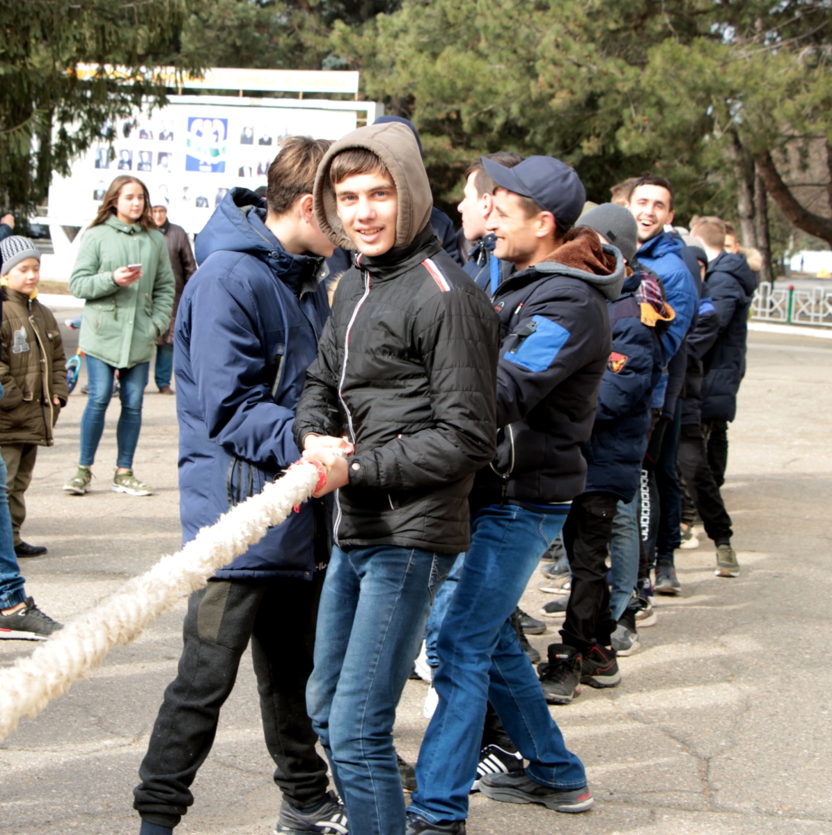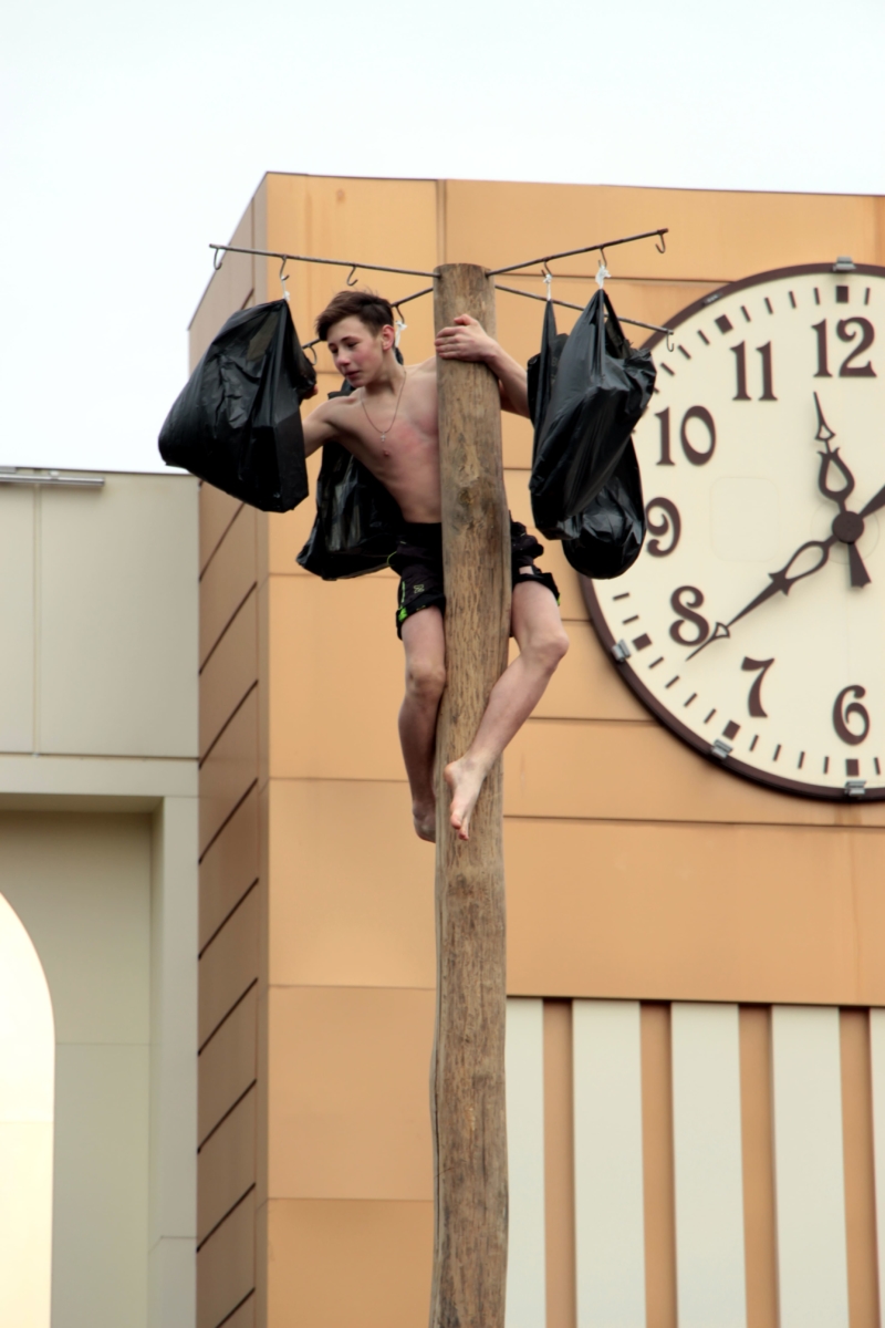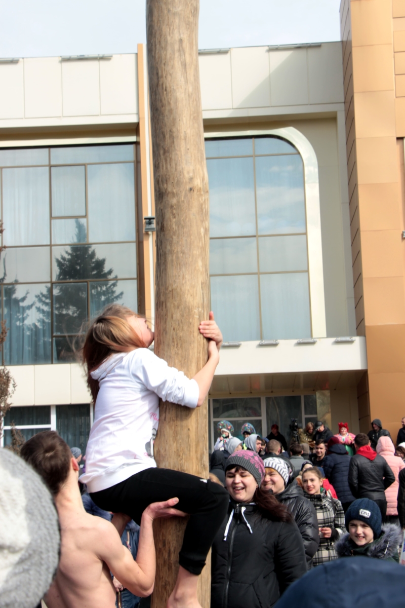Для спортивных и азартных были организованы спортивные состязания. Среди них, перетягивание каната и поднятие гири. Также представители сильного пола пробовали свои силы в лазании на столб, на вершине которого их ждали призы. В этом году посостязаться решила и девушка, но до финиша она не добралась.
