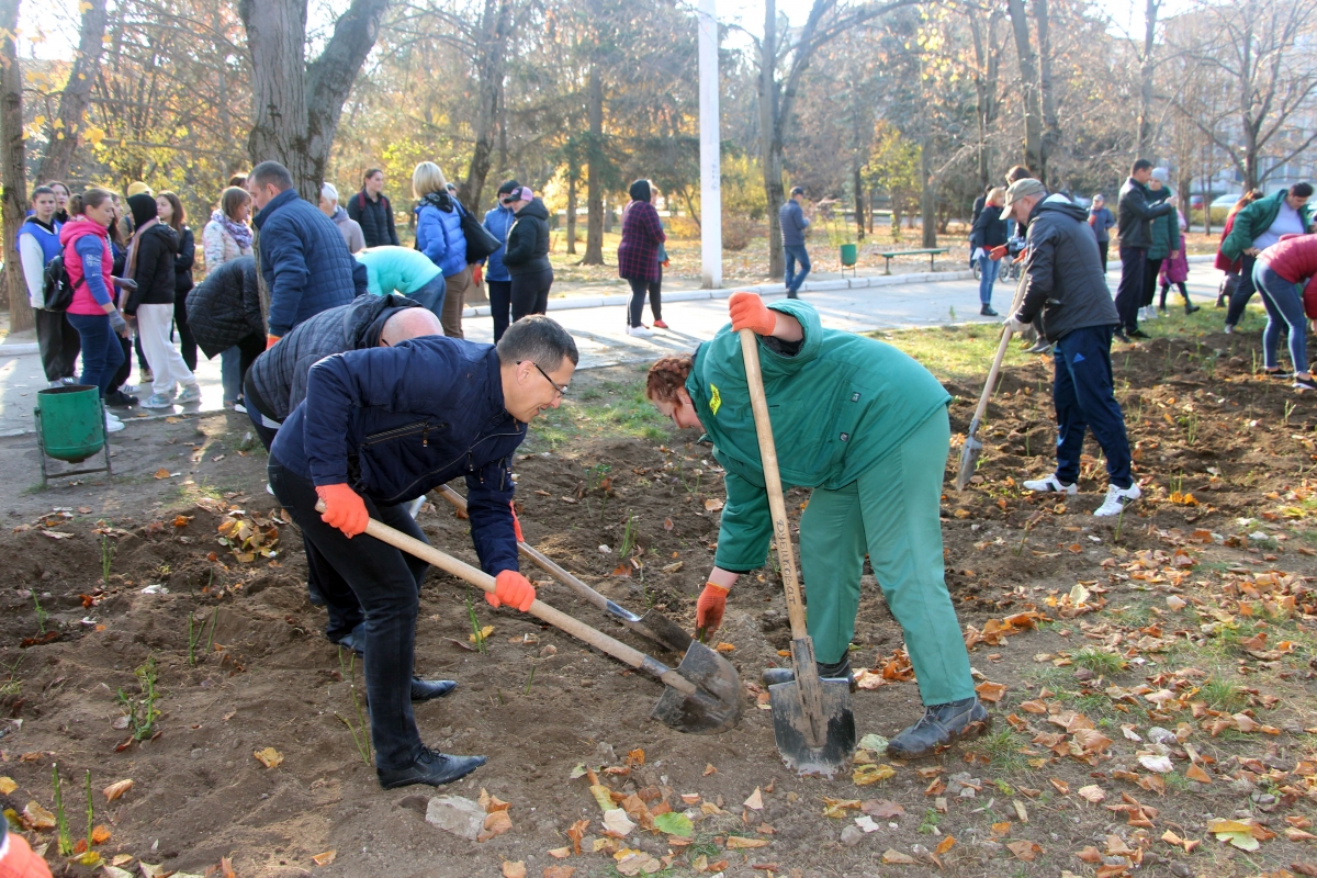 Сегодня коллектив госадминистрации вышел на субботник в городской парк. Совместно с коллегами из Совета народных депутатов и волонтёрами сотрудники администрации высадил полторы тысячи кустов роз.