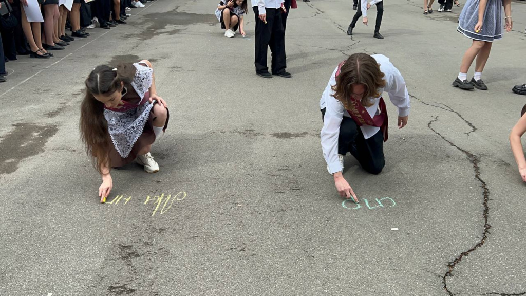 На линейке отличившимся вручили грамоты и благодарственные письма. На празднике звучали песни, стихи, выпускники танцевали вальс, оставляли памятные надписи на асфальте школьного двора.