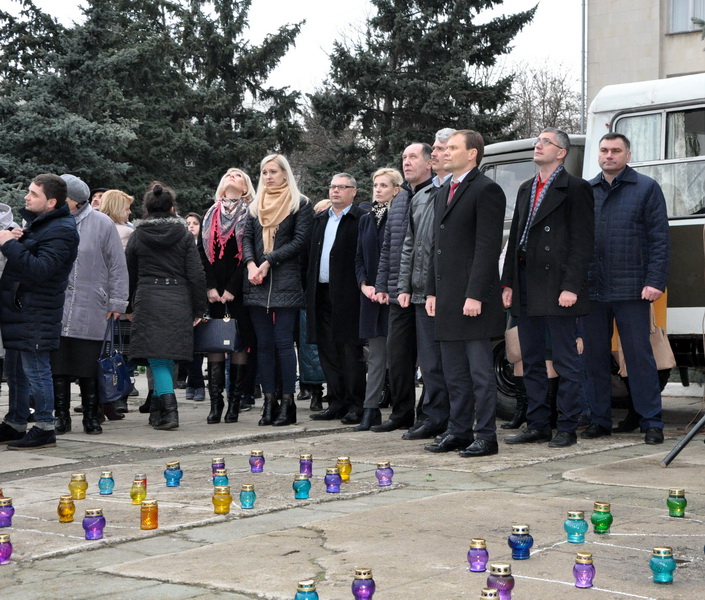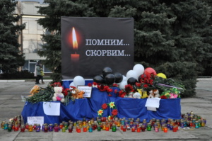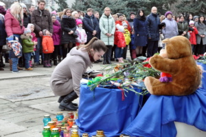 В Рыбнице прошла акция памяти жертв пожара в торговом центре г. Кемерово «Зимняя вишня». На центральной площади организовано место для выражения скорби по жертвам пожара.