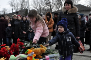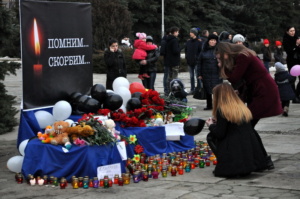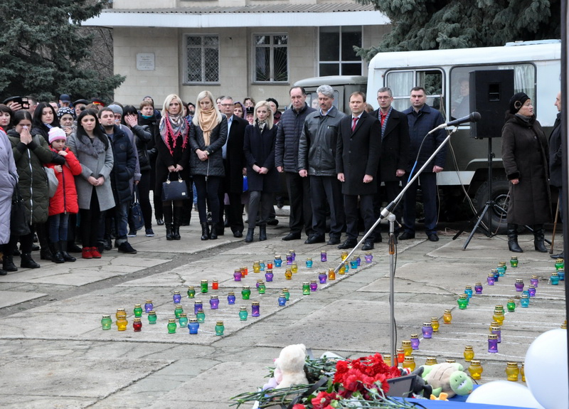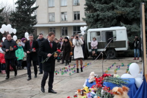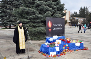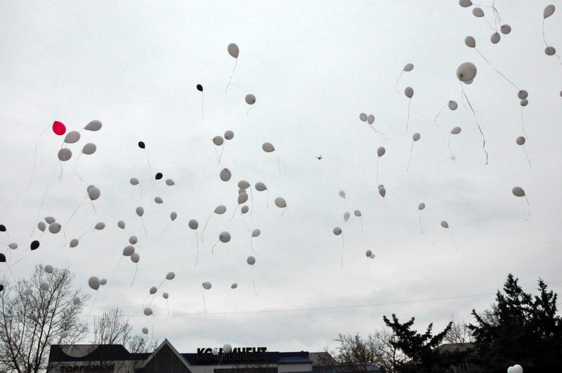 Священнослужитель отец Сергий провёл литургию по погибшим. Их память почтили минутой молчания, после чего в небо были запущенны воздушные шары.