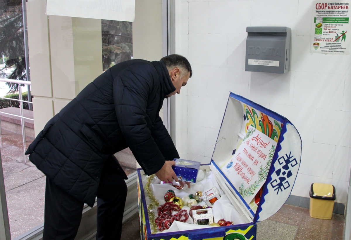 Глава госадминистрации Виктор Тягай и руководители городских организаций принимают участие в акции «На каждой игрушке тепло наших рук». Напомним, цель акции – создание праздничной атмосферы для врачей и пациентов Covid-госпиталя.