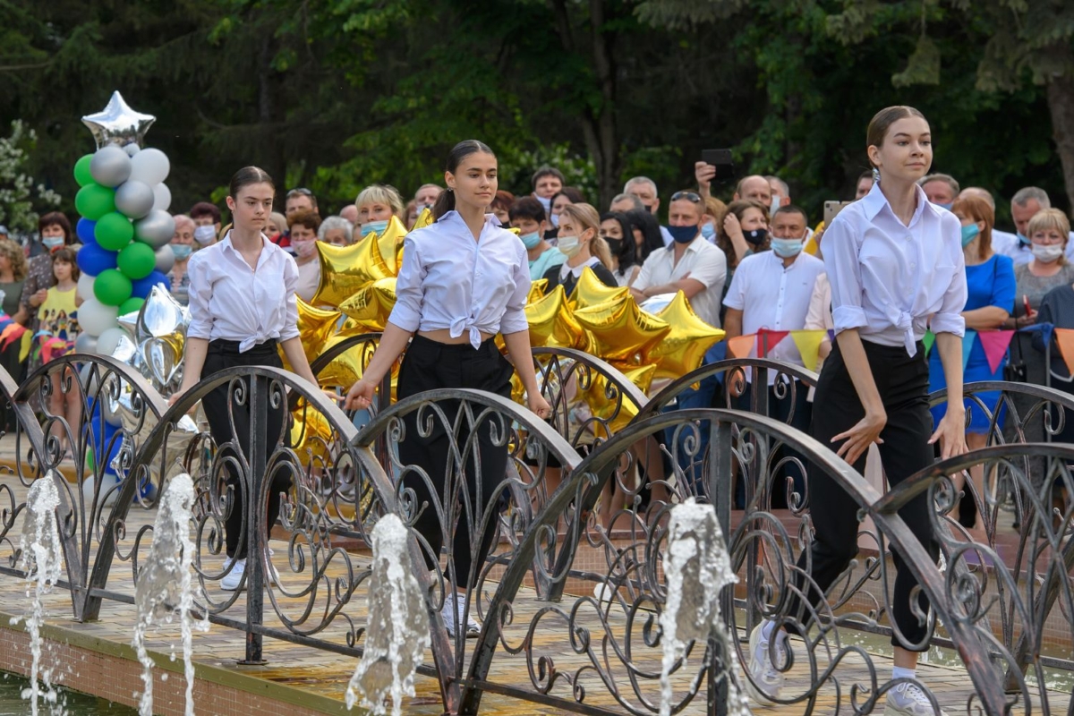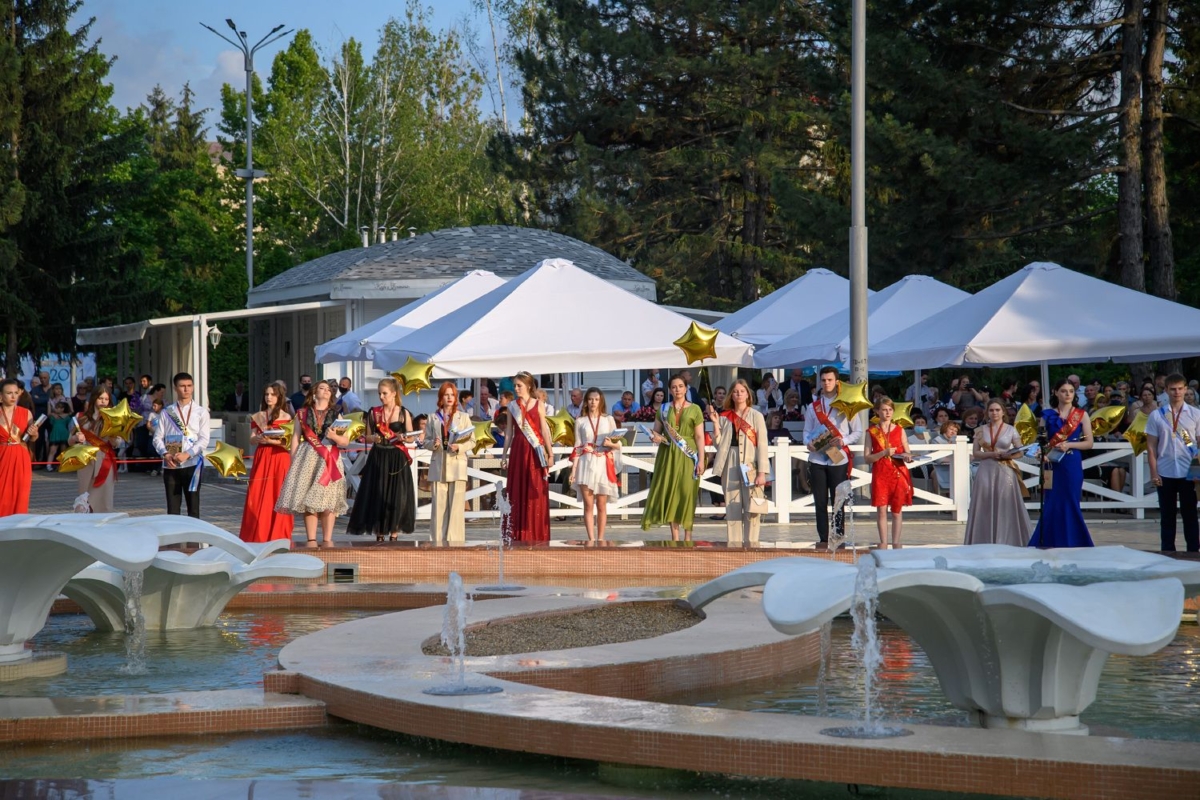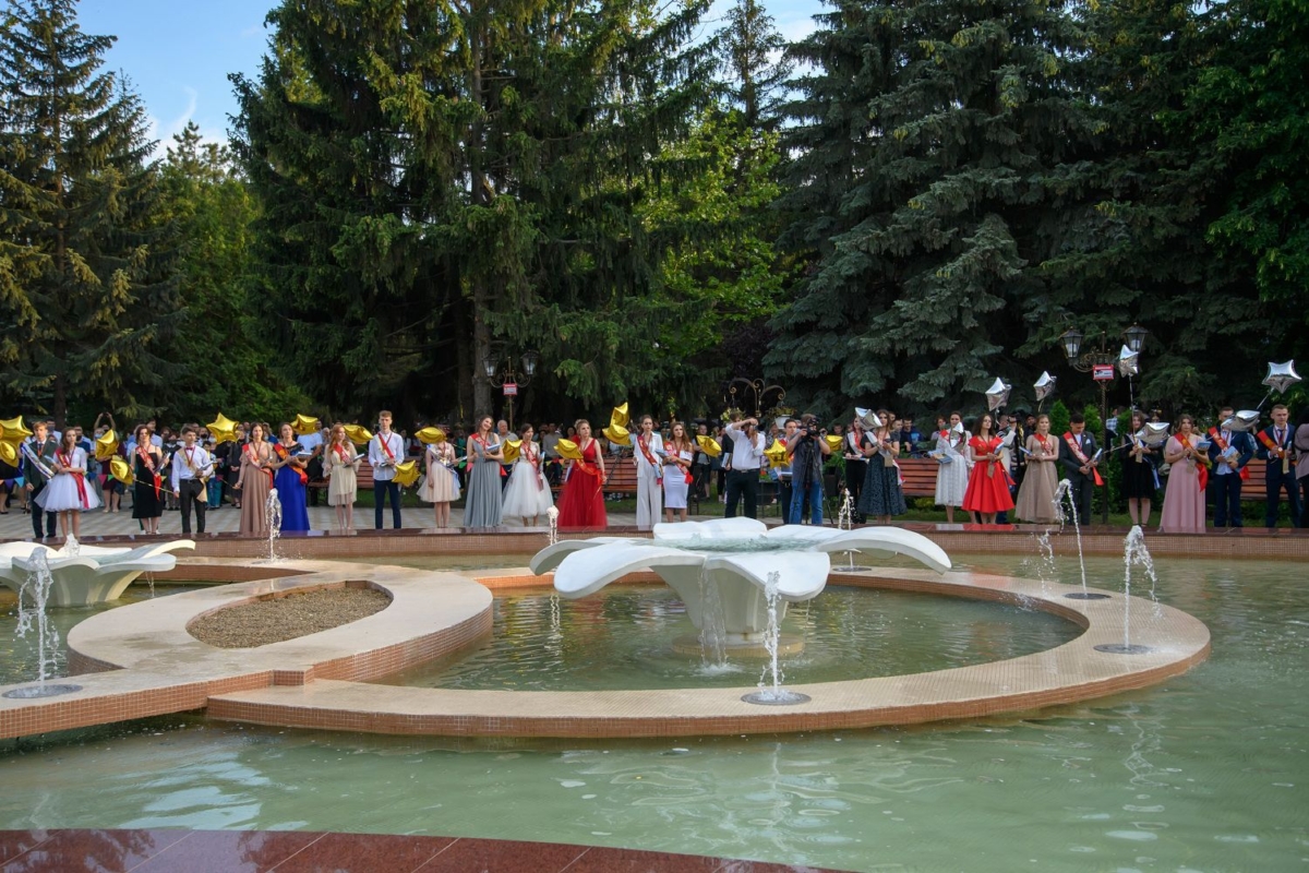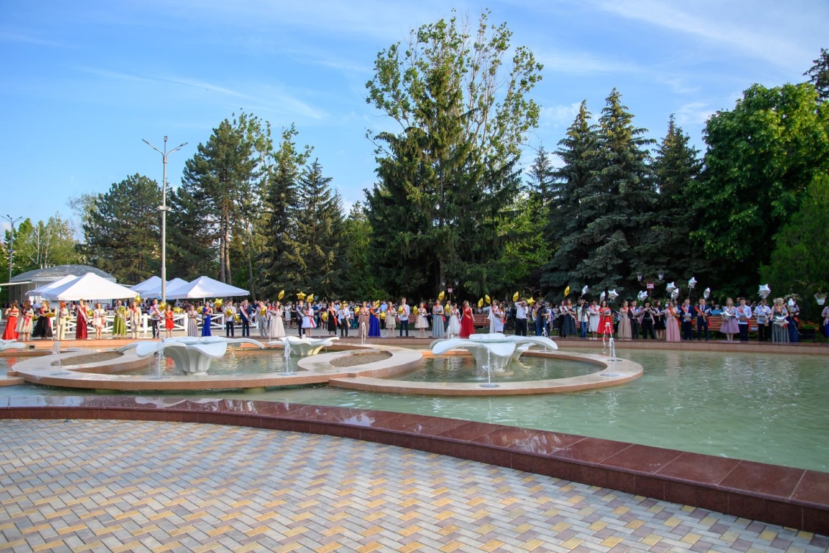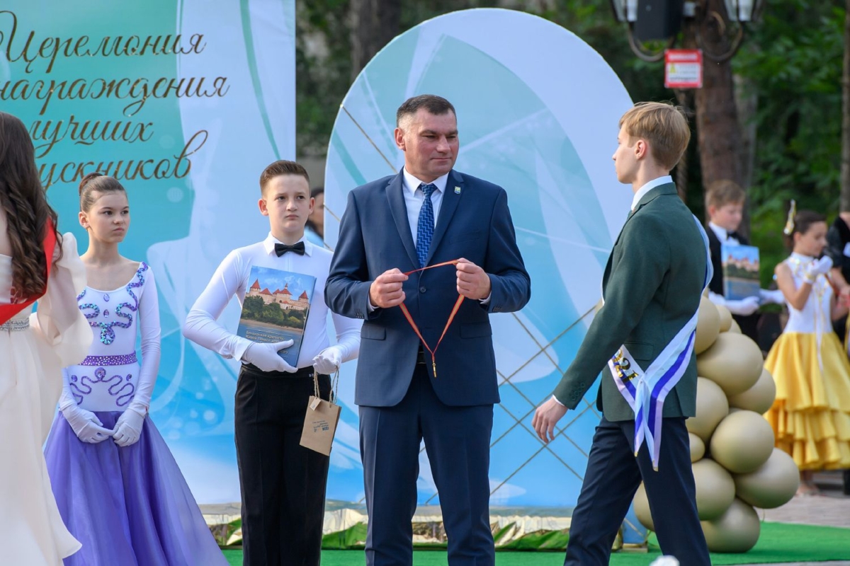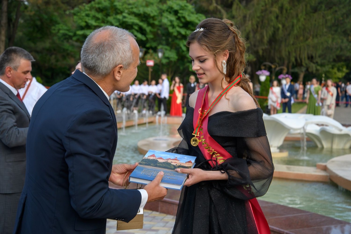 Вместе с супругой он участвует в торжественной церемонии чествования лучших выпускников школ Рыбницкого района. Праздничное мероприятие  организовано на площадке центрального городского парка.