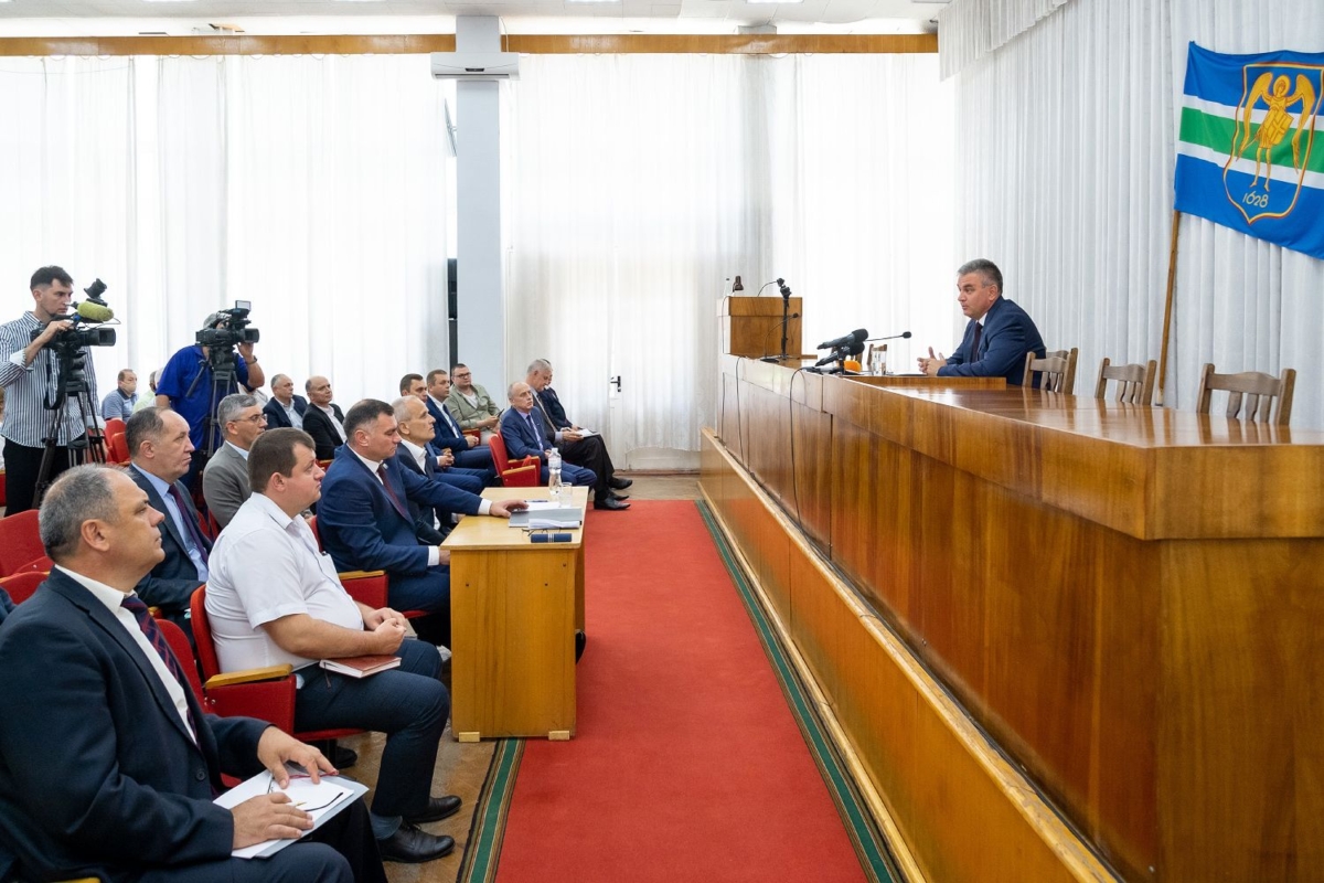 Президент провел встречу с представителями рыбницкой администрации, депутатами Верховного и местного Советов. Мероприятие плановое. Цель – детально ознакомиться с ситуацией в районе. Разговор состоялся в зале заседаний госадминистрации. Приветствуя собеседников, Вадим Красносельский отметил, что рабочий диалог с районными властями и народными избранниками носит системный характер. Прямое взаимодействие не прекращалось в период карантинных ограничений, но, по словам Президента, он рад возможности выйти из режима ограниченности личных контактов.