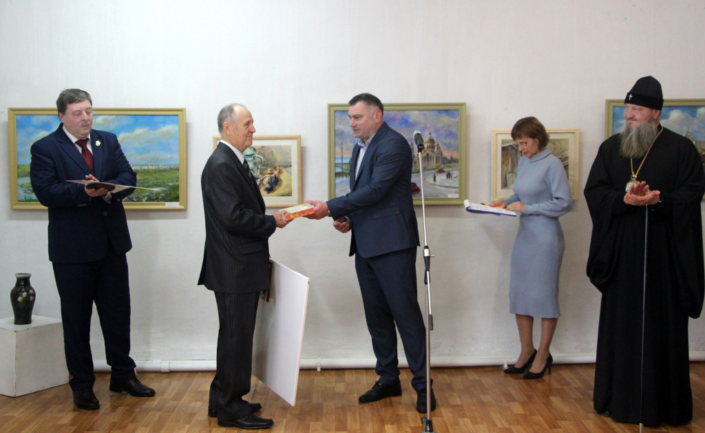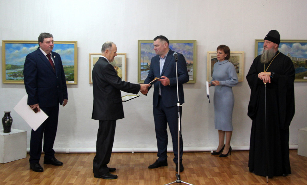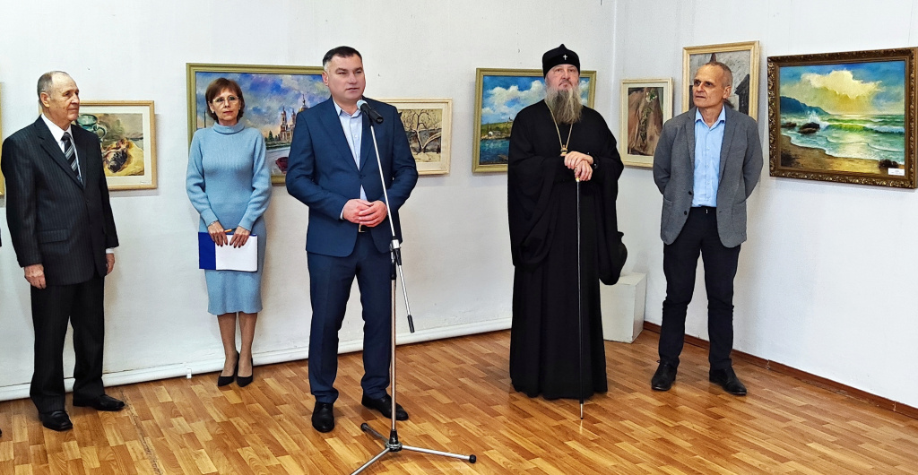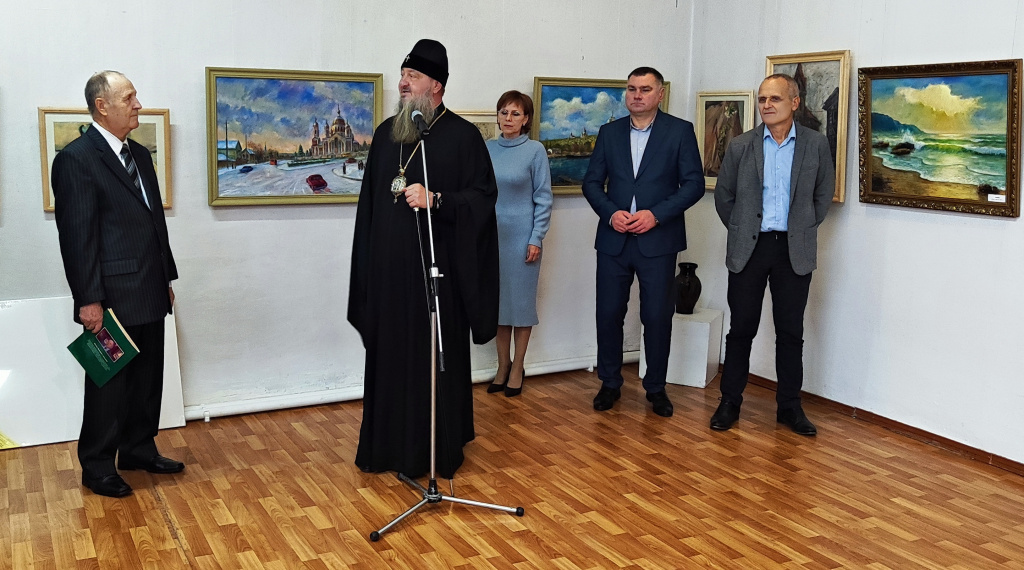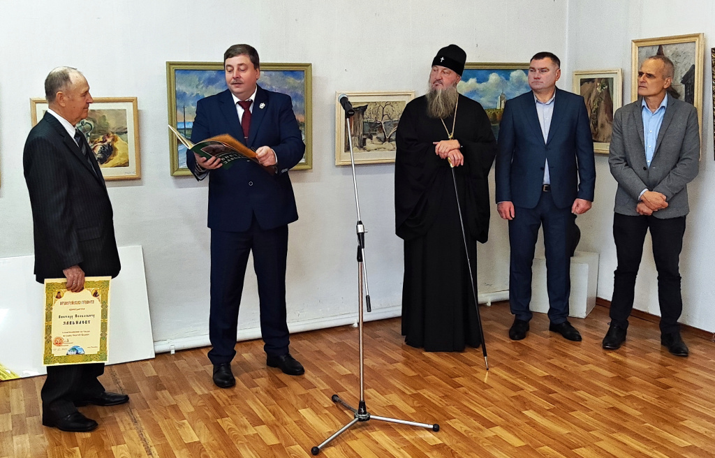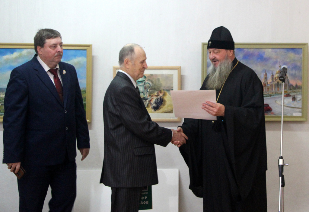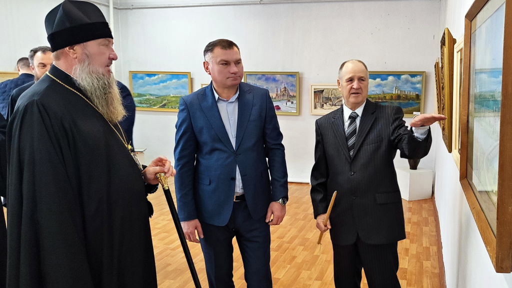 Глава города Виктор Тягай и Архиепископ Тираспольский и Дубоссарский Савва посетили персональную выставку Виктора Завьялова.
