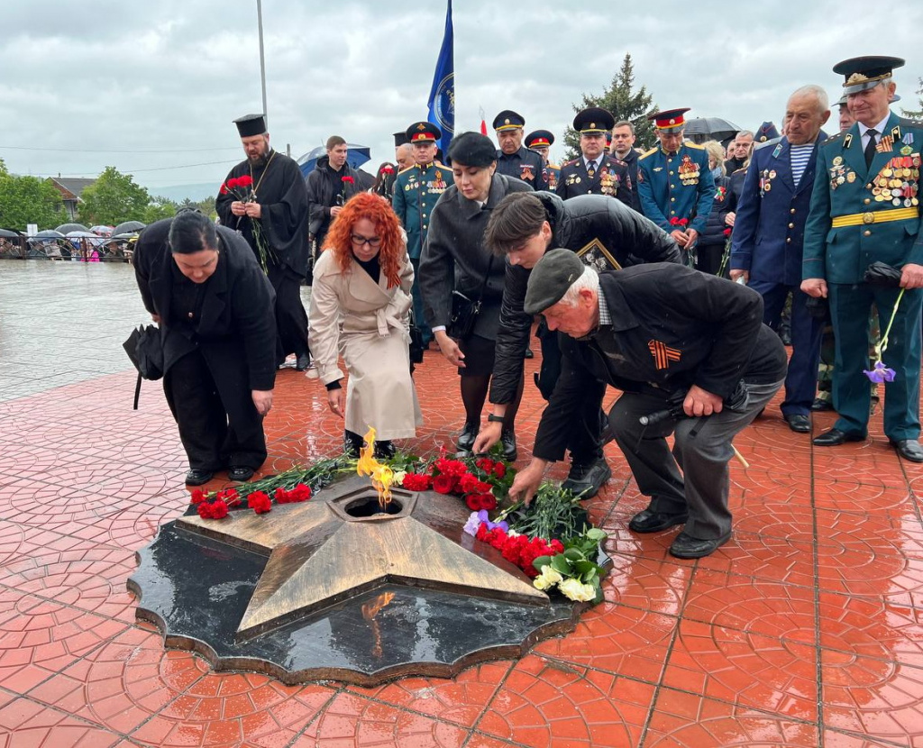 Участники церемонии возложили венки и цветы к Вечному огню. Память павших почтили минутой молчания.