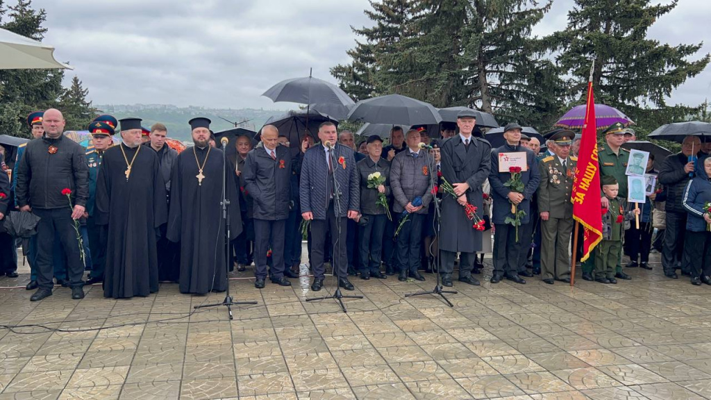 У Мемориала Воинской Славы состоялся праздничный митинг. К собравшимся обратился глава госадминистрации. Виктор Тягай поздравил жителей города и района с 80-летием со дня Победы в Великой Отечественной войне 1941-1945 гг. и подчеркнул важность сохранения правды о войне и передачи памяти о героизме народа молодому поколению. “Всё дальше уходят события тех страшных дней, но с каждым годом мы с глубочайшей благодарностью вспоминаем бессмертный подвиг советского солдата. Мы всё ещё слышим эхо войны. Оно — в рассказах ветеранов. В памятниках. В старых фотографиях. В глазах тех, кто остался жив. Оно — в нас. Пусть память о подвиге живёт в семьях, в школах, в сердцах наших детей,”- отметил глава города в своем выступлении.