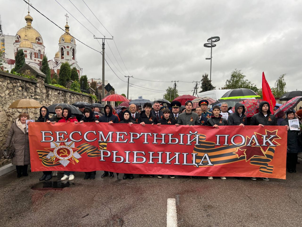 После официальной части по улицам города прошло шествие «Бессмертного полка». Сотни рыбничан несли в руках портреты своих родственников — участников войны. В колонне шли целыми семьями: с детьми, с флагами, с цветами. Многие шли молча, сдерживая слёзы, другие делились воспоминаниями о своих родных. Шествие сопровождалось военными песнями и аплодисментами