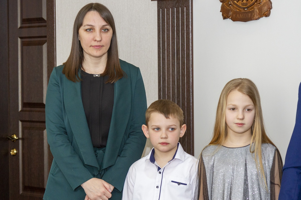 «Квартира – найдется. Главное, что уже получили сертификат. Спасибо за эту программу, что она существует и есть какая-то помощь нам, – отмечает она. – Дети уже думают, как будут делить комнаты. Но я говорю, что «делим шкуру неубитого медведя», но все равно приятно, когда есть на горизонте что-то, а сертификат в руках. Надеемся, что все найдем, и детям будет по комнате». К слову, для Вани и Алены Премьер провел экскурсию в свой кабинет.