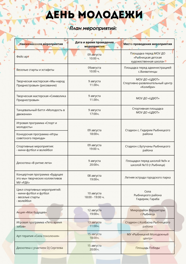День молодежи: какие мероприятия пройдут в Рыбницком районе и г.Рыбница webrybnitsa Новости 05.08.202505.08.2025