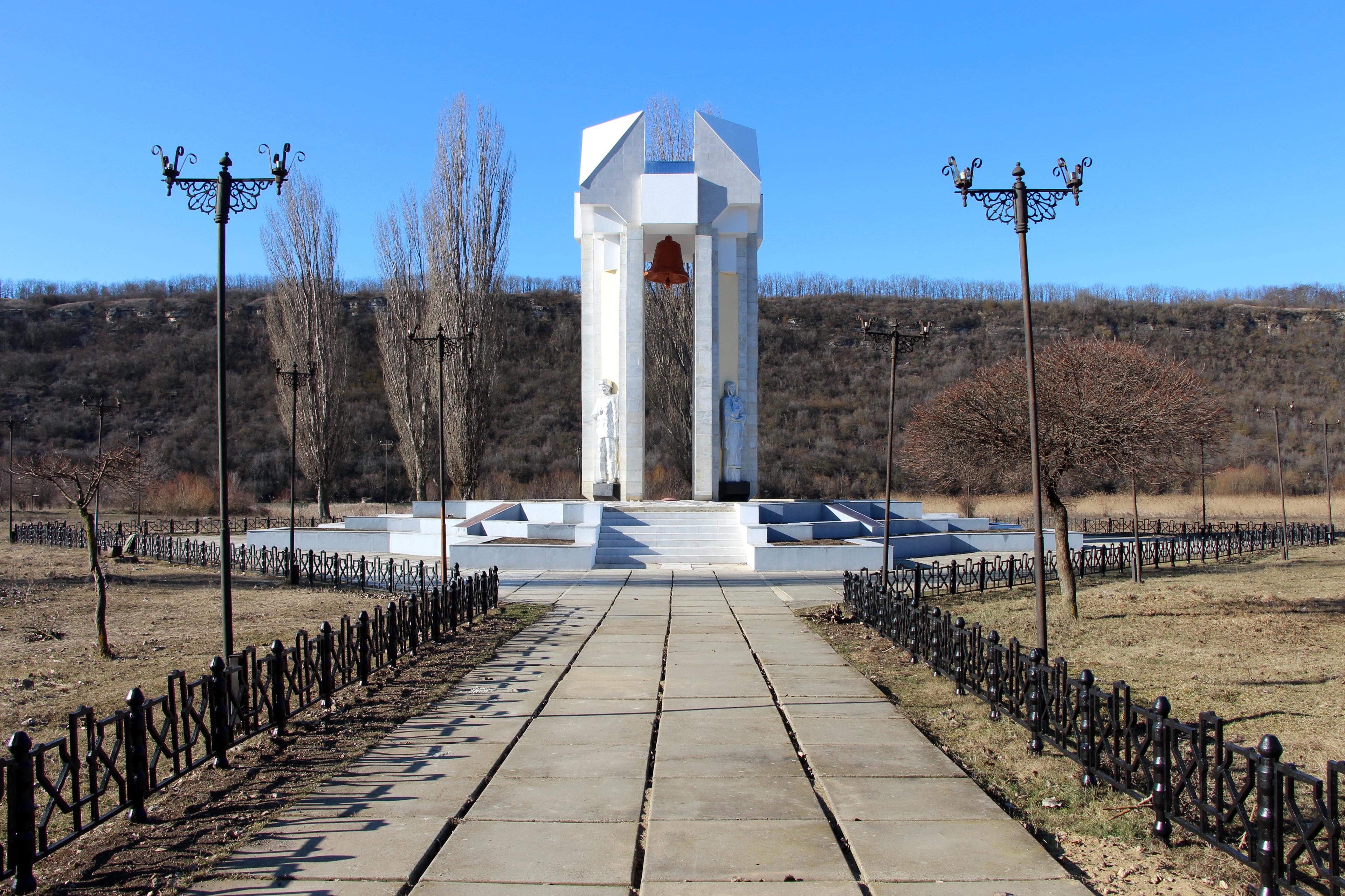 «Первый памятник был построен в 1964 году за счёт средств жителей села. Но со временем он разрушился, и в 90-х началось строительство нового. Это был дорогой проект, но наш колхоз в то время был миллионером. Такого мемориала на территории ПМР больше нет, его высота 10 метров. Посередине колокол, а внизу Вечный огонь», – рассказала заведующая музеем с. Гидирим Татьяна Козловская.