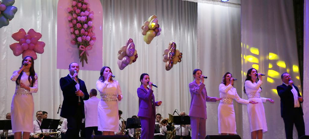 Все самые тёплые слова и пожелания в этот день звучали в адрес дорогих мам и бабушек, жен, сестер и дочерей. Пусть исполняются желания, а в душе всегда цветёт весна, говорили со сцены. Замечательный концерт стал отличным подарком накануне праздника. Для присутствующих выступили вокальная группа «Санлайт», вокальный коллектив «А-3», Елена Опалинская и Анастасия Лисовая, Александр Клейник и Роман Гальчинский, Галина Галаченко и Елена Бобок, а также специальный гость программы – отец Герасим, который потрясающе исполнил всеми любимые песни русской и зарубежной эстрады. Танцы подарили зрителям ансамбль народного танца «Арнэутул», коллектив бального танца «Вдохновение» и хореографический коллектив «Арабеск», Елизавет Фадийчук исполнила соло на саксофоне. Духовой оркестр порадовал отличной игрой. Завершился концерт фейерверком из шаров.