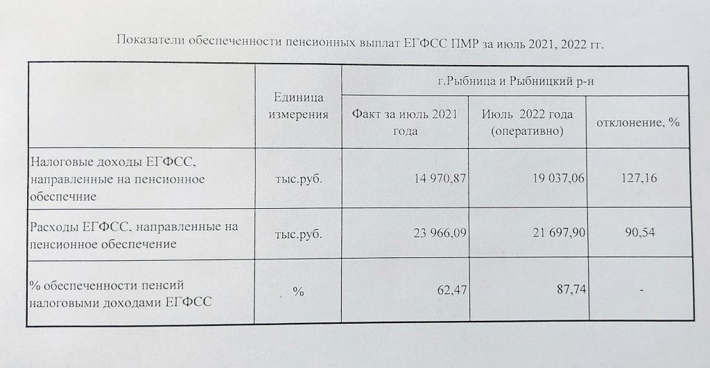Показатели обеспеченности пенсионных выплат Единого государственного фонда социального страхования Приднестровской Молдавской Республики за июль 2021, 2022 гг.