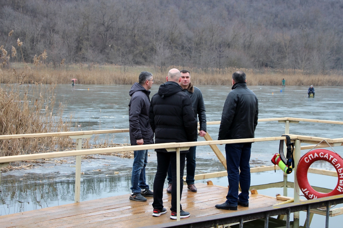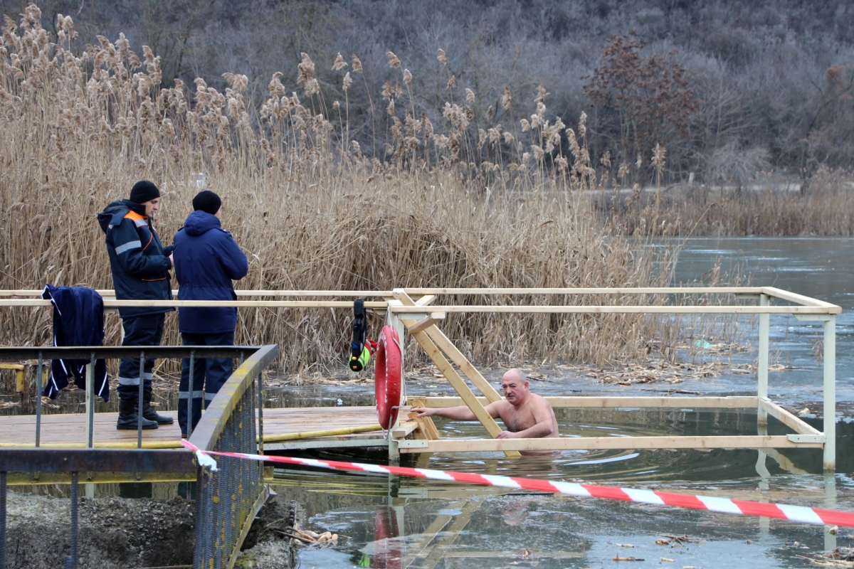 Для удобства и безопасности на берегу озера для рыбничан подготовили обогреваемые вагончики и палатки для переодевания, а также передвижной пункт обогрева. На спуске к проруби установили трап и лестницу. Все желающие смогли совершить традиционный обряд купания под бдительным надзором спасателей.