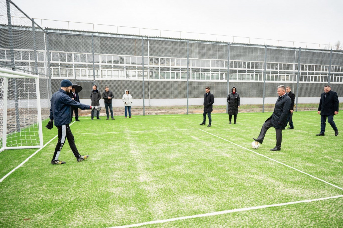 Глава государства Вадим Красносельский посетил спорткомплекс «Юбилейный». В этом году здесь появилось мини-футбольное поле. Строительные работы проводили на средства фонда капвложений. Уже выполнен монтаж искусственного покрытия.