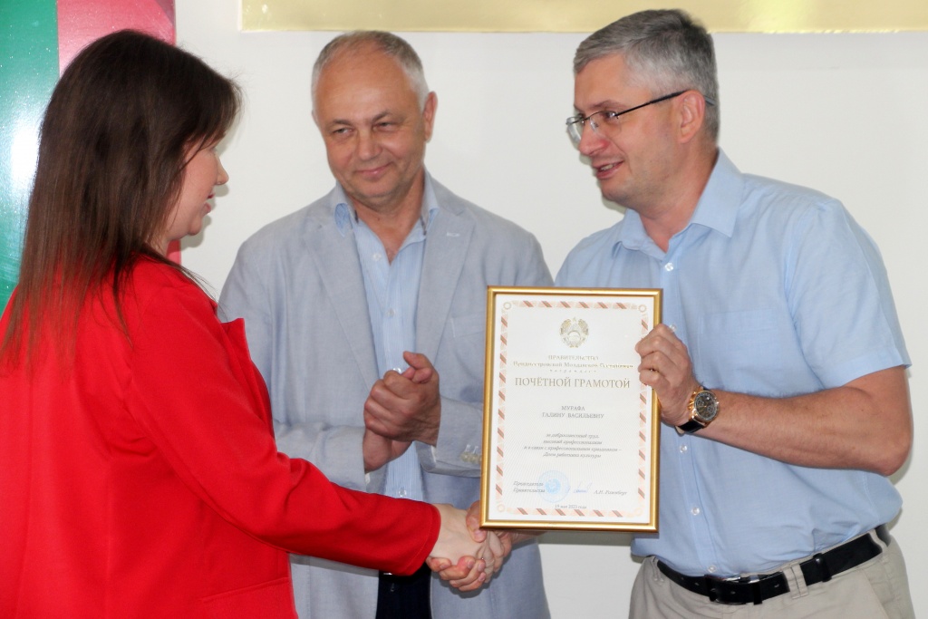 В Рыбнице артистов, руководителей, библиотекарей, преподавателей чествовали в госадминистрации. Здесь состоялась церемония награждения.