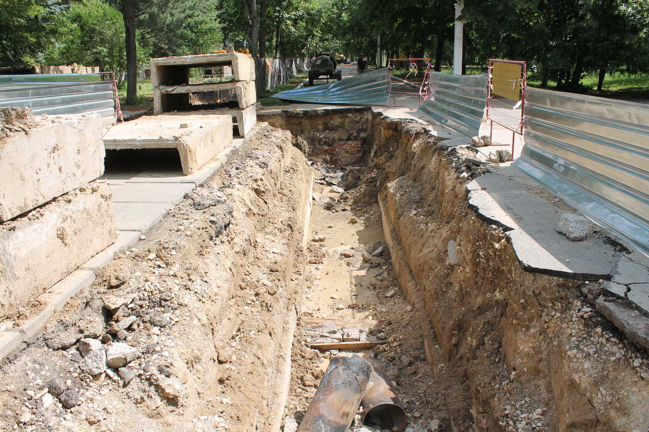 В парковой зоне г.Рыбницы филиалом МГУП «Тирастеплоэнерго» продолжается ведение работ по замене магистрального трубопровода теплоснабжения.