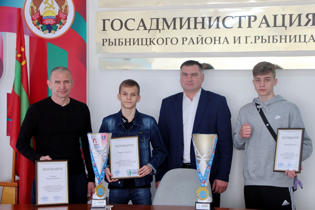 Ребята тренируются в Рыбницком спортивном клубе рукопашного боя и традиционного каратэ под наставничеством заслуженного тренера ПМР Руслана Костюка. В его адрес звучали отдельные слова благодарности. Глава города подчеркнул весомый вклад тренера в воспитание чемпионов, а также в развитие физической культуры города в целом. Обсуждалась помощь, которую госадминистрация планирует оказать клубу для создания более комфортных условий тренировок.