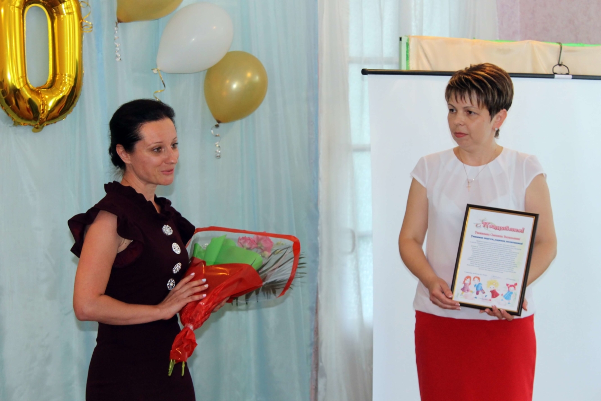 С юбилеем коллектив поздравили помощник депутата Верховного Совета Елена Лановая, и.о. начальника Управления народного образования Оксана Погребная. Тёплые слова звучали и от выпускников садика, которые пришли поздравить своих воспитателей, а также от родителей дошколят и педагогов из образовательных учреждений города.