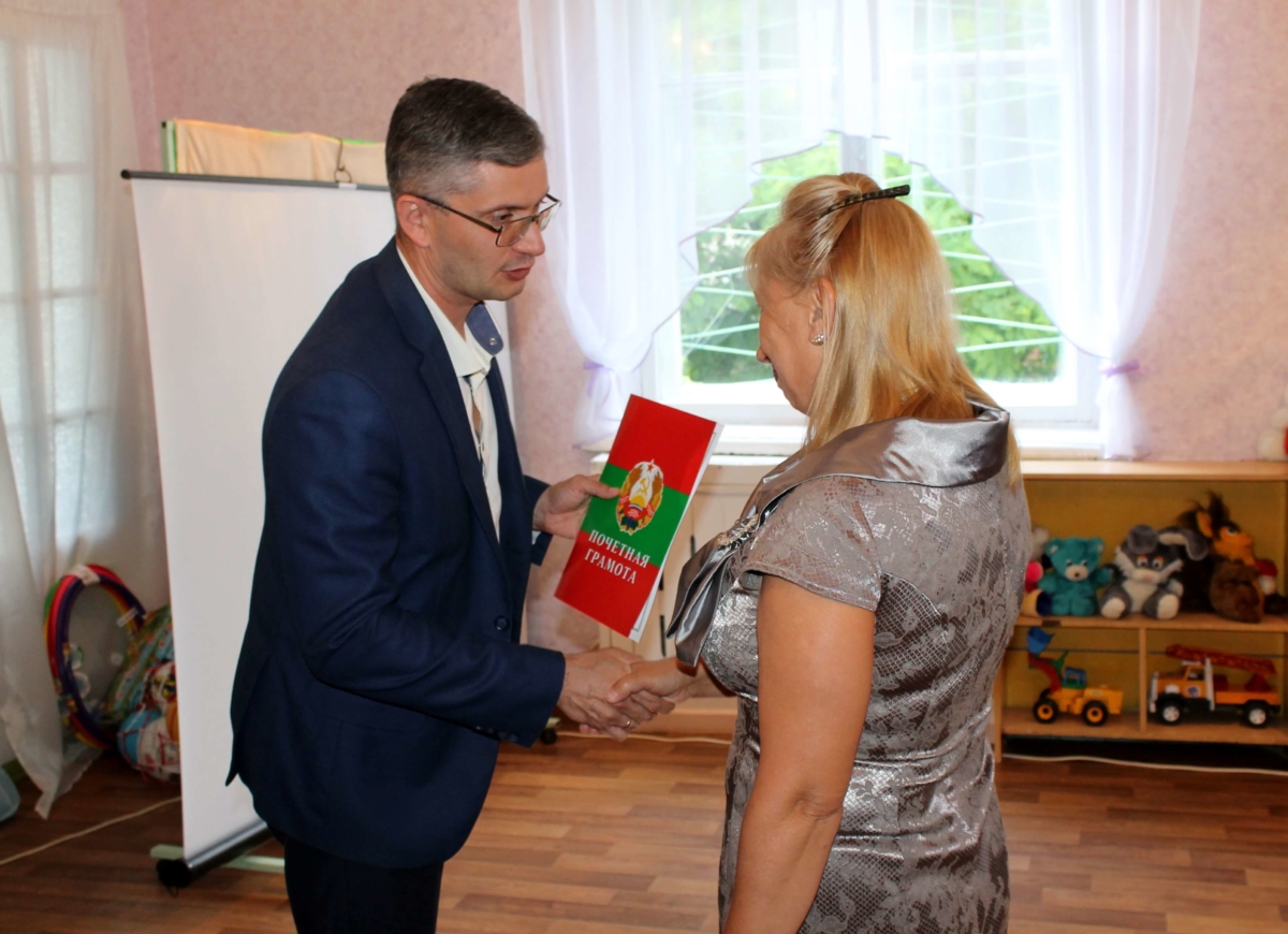 Поздравить педагогов, воспитанников и их родителей пришли заместитель главы госадминистрации Юрий Молдовский и секретарь горрайсовета народных депутатов Дмитрий Багрин. Они осмотрели группы, спальные комнаты, медицинский кабинет, комнаты для занятий физической культурой.