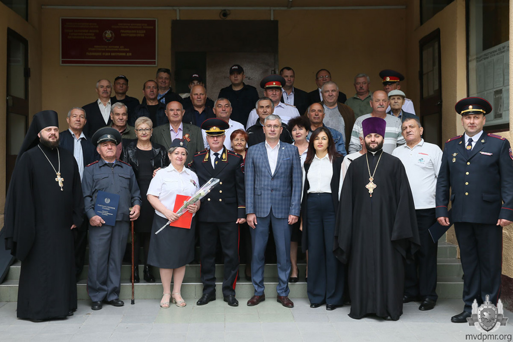 В день 33-й годовщины поздравить действующих сотрудников и ветеранов прибыли министр внутренних дел ПМР Виталий Нягу и его заместитель, ветераны, руководители района, представитель духовенства.