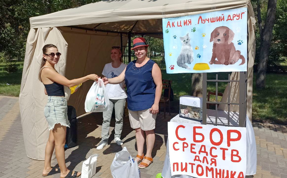 Пункт приема помощи расположился в парке на аллее. На протяжении 9 часов волонтеры принимали то, что несли неравнодушные люди. В рамках акции собрали крупы, сухие и жидкие корма, мясную и рыбную продукцию. Кроме того, люди приносили медикаменты, моющие средства, а также посуду для приготовления еды животным.