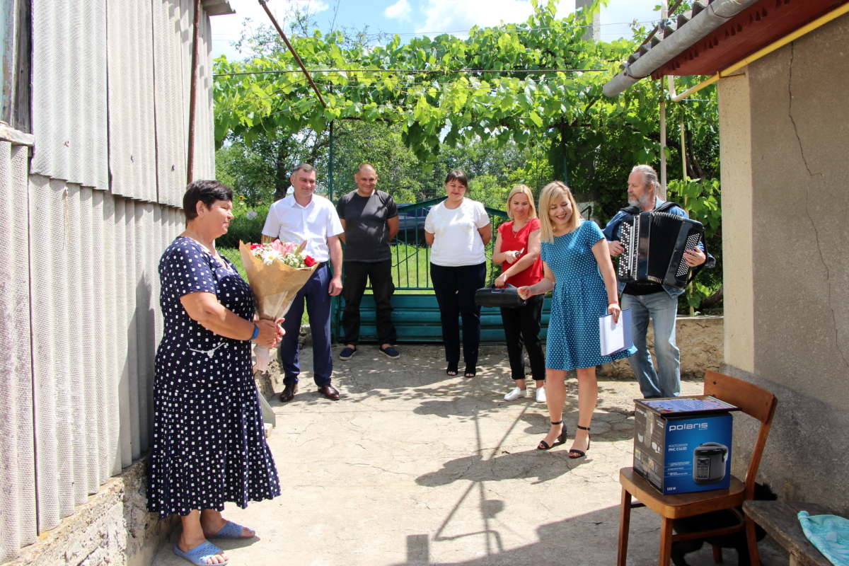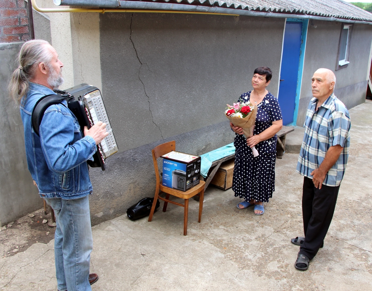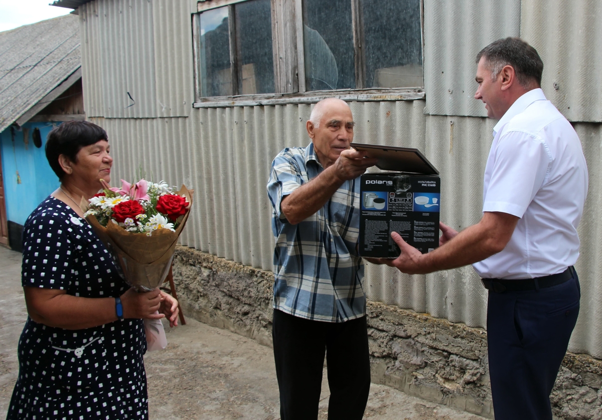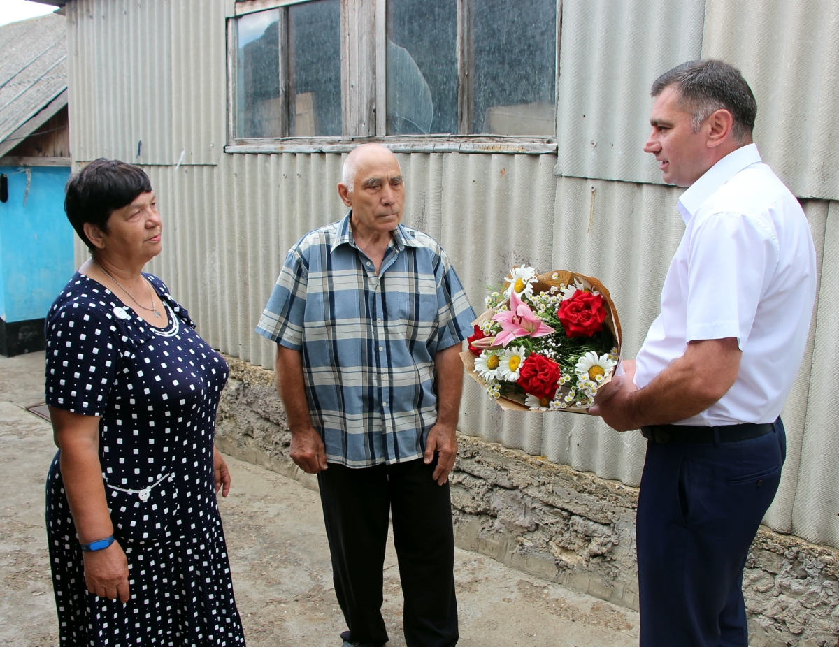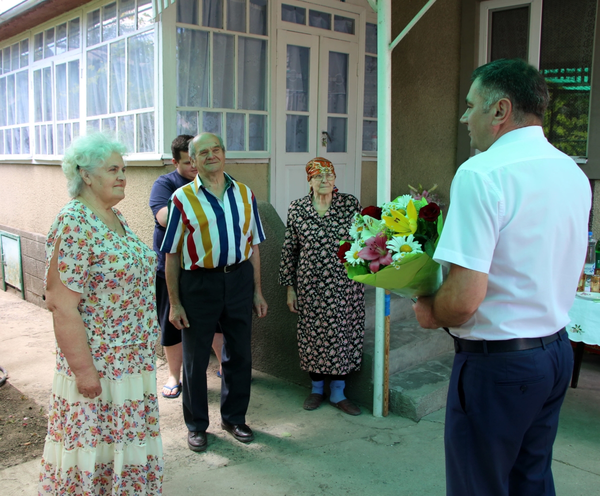 Поздравление принимала семья Мельничук из Новой Михайловки. Виктор и Светлана поженились в июле 1970 года. В этом году у супругов золотая свадьба. Оба находятся на заслуженном отдыхе, ведут домашнее хозяйство. К слову, только плодовых деревьев на территории домовладения семьи 70 штук. Говоря о секретах семейной жизни, подчеркивают – главное не таить обиды и злость друг на друга, жить во взаимопонимании.