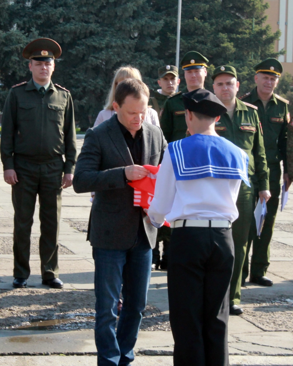 Глава района передал юнармейцам копию Знамени Победы, которое команда-победительница торжественно пронесет 9 Мая в шествии Бессмертного полка.