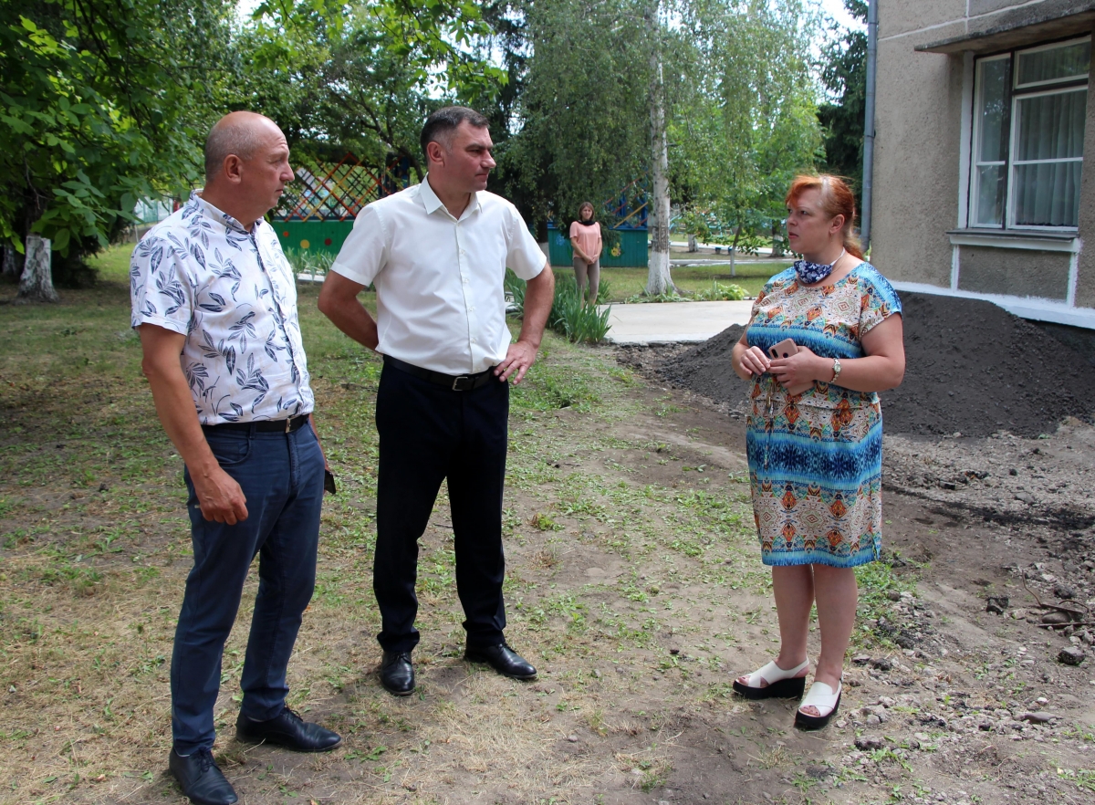 Ещё один объект, который посетил глава – Ержовский детский сад. Здесь в рамках Программы по благоустройству территорий образовательных и социально-культурных учреждений выполнят обустройство бетонного покрытия территории. Идут подготовительные работы.
