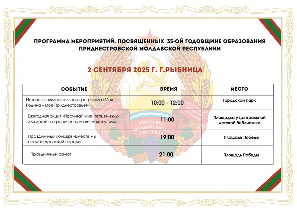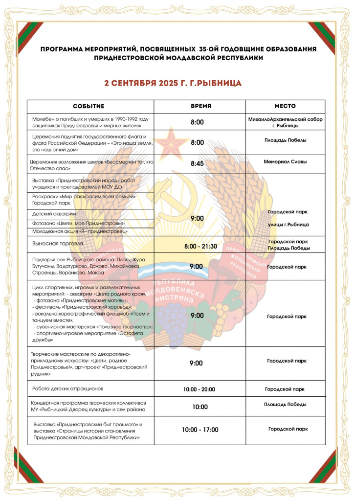 2 сентября 2025 год – г.Рыбница