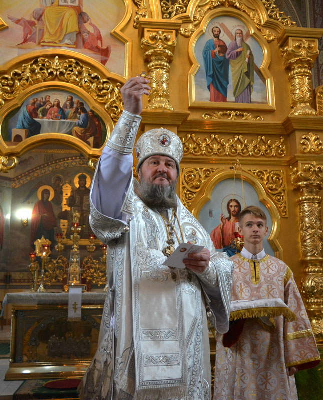 В Михаило-Архангельском соборе провели праздничную литургию и крестный ход. Церемонию богослужения посетил Архиепископ Тираспольский и Дубоссарский Савва.